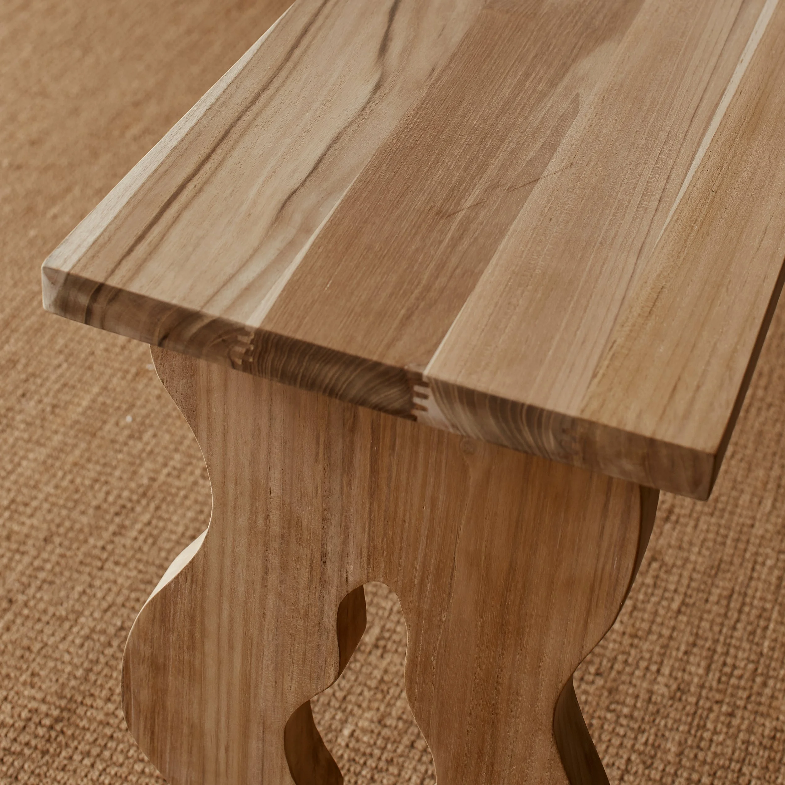 McMullin & co’s signature curvatures are reimagined in the Earl range, which features a console, side table, bench seat and dining table that Alice describes as ‘whimsical and romantic, with its angular proportions and familiar teak finish.’ The new design narrative also continues with the Wyatt range, which features angular cut-outs that cast memorable silhouettes, creating a visual texture and unique visual language while remining distinctly organic in form.