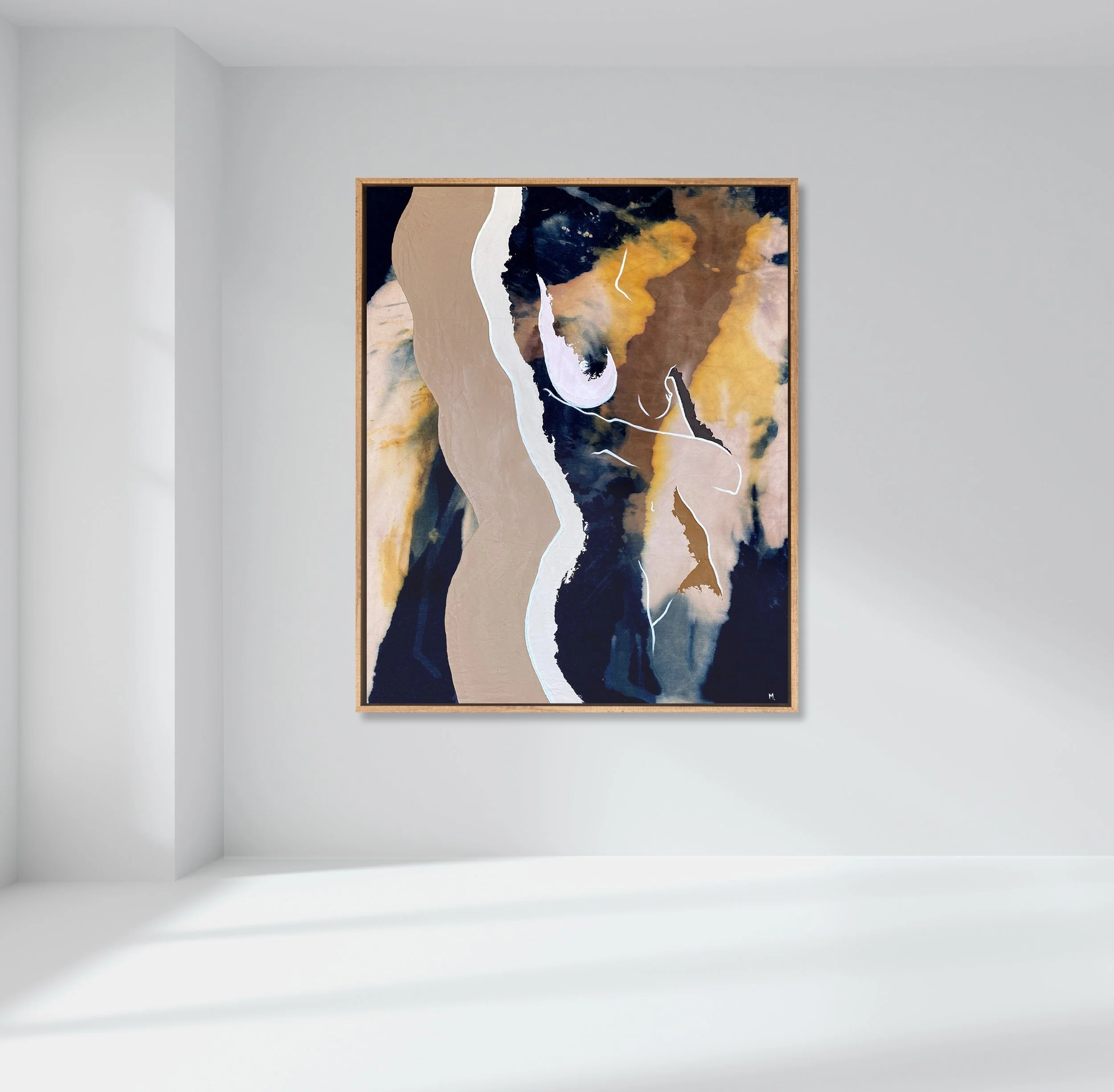 Drawing inspiration from nature and the human form, we find soft curves and organic shapes reminiscent of landscapes or the female form in Meg’s abstract work. ‘I love how the curves of bodies mimic the curves of mountains, rocks and water,’ she says.