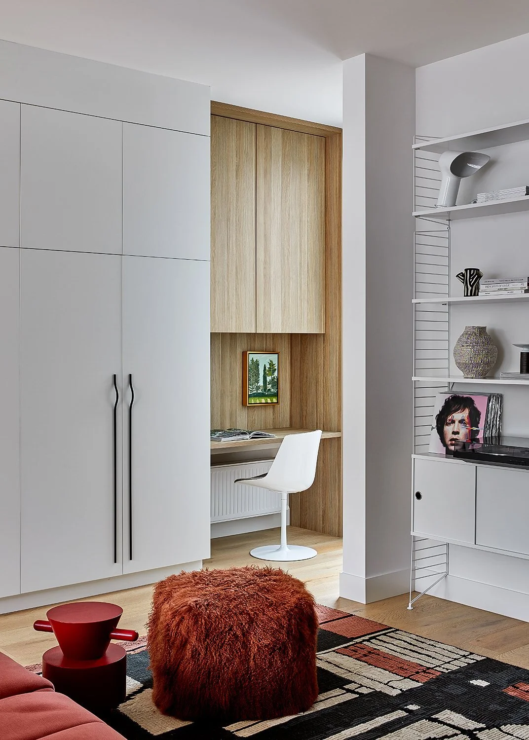 The pared-back approach of complementary forms and blocks of colour epitomises the design of the entire home.