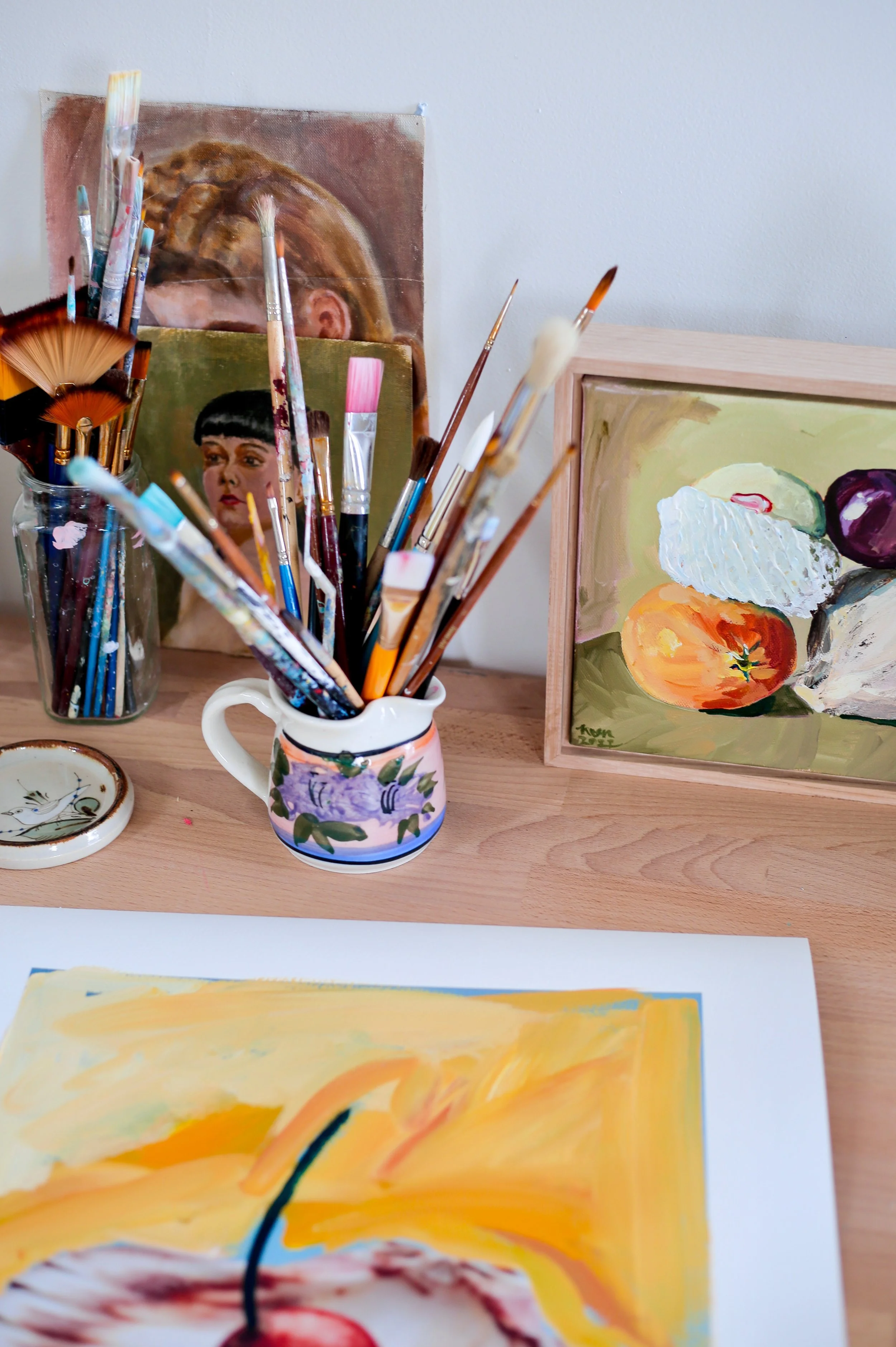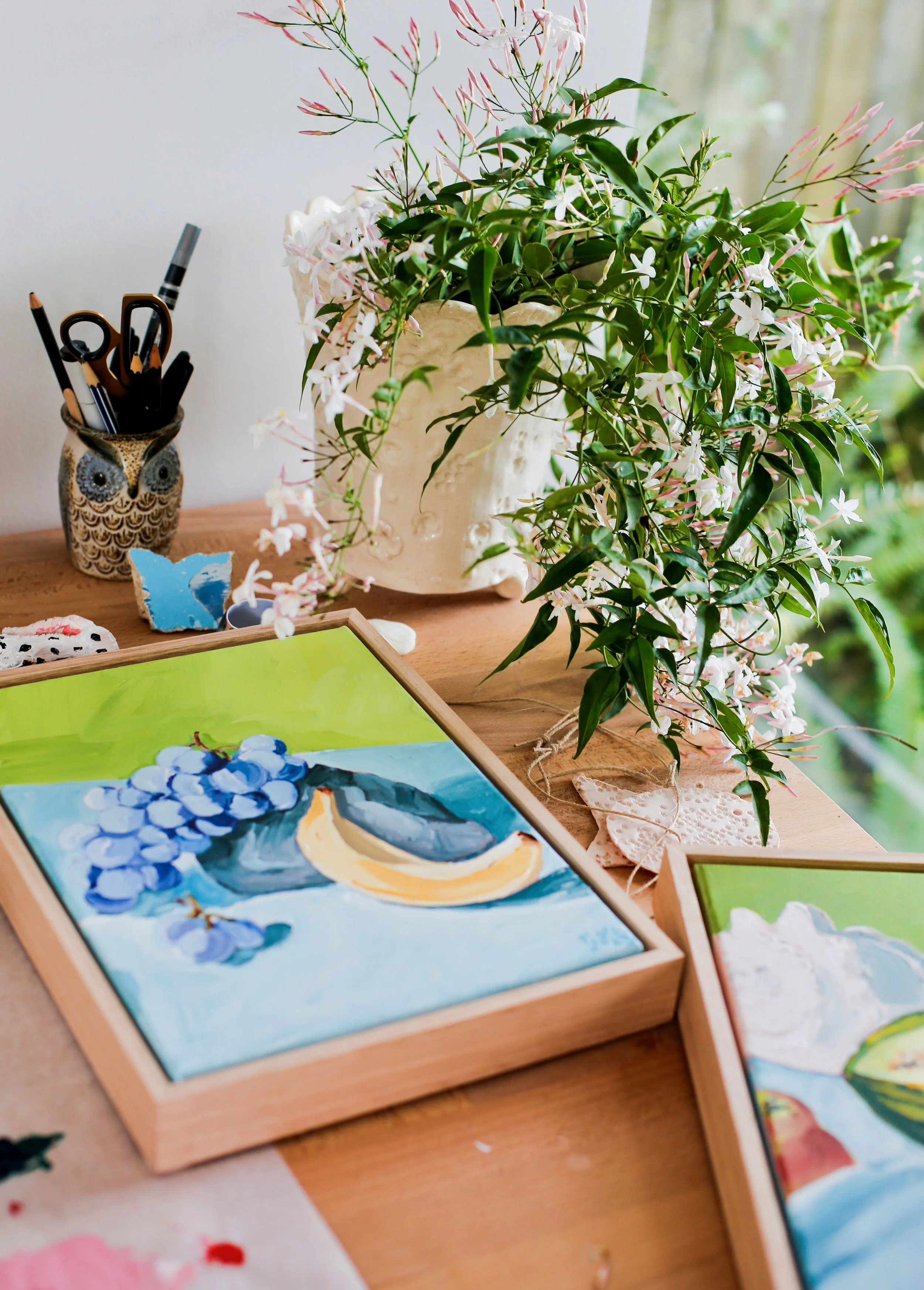 ‘What starts as a meditative practice of making a pretty picture (often with leftover fruit from a styling job), ends up being a photographic print and eventually a painting, or even a mixed media melding of the two.’ Photo: Hande Renshaw