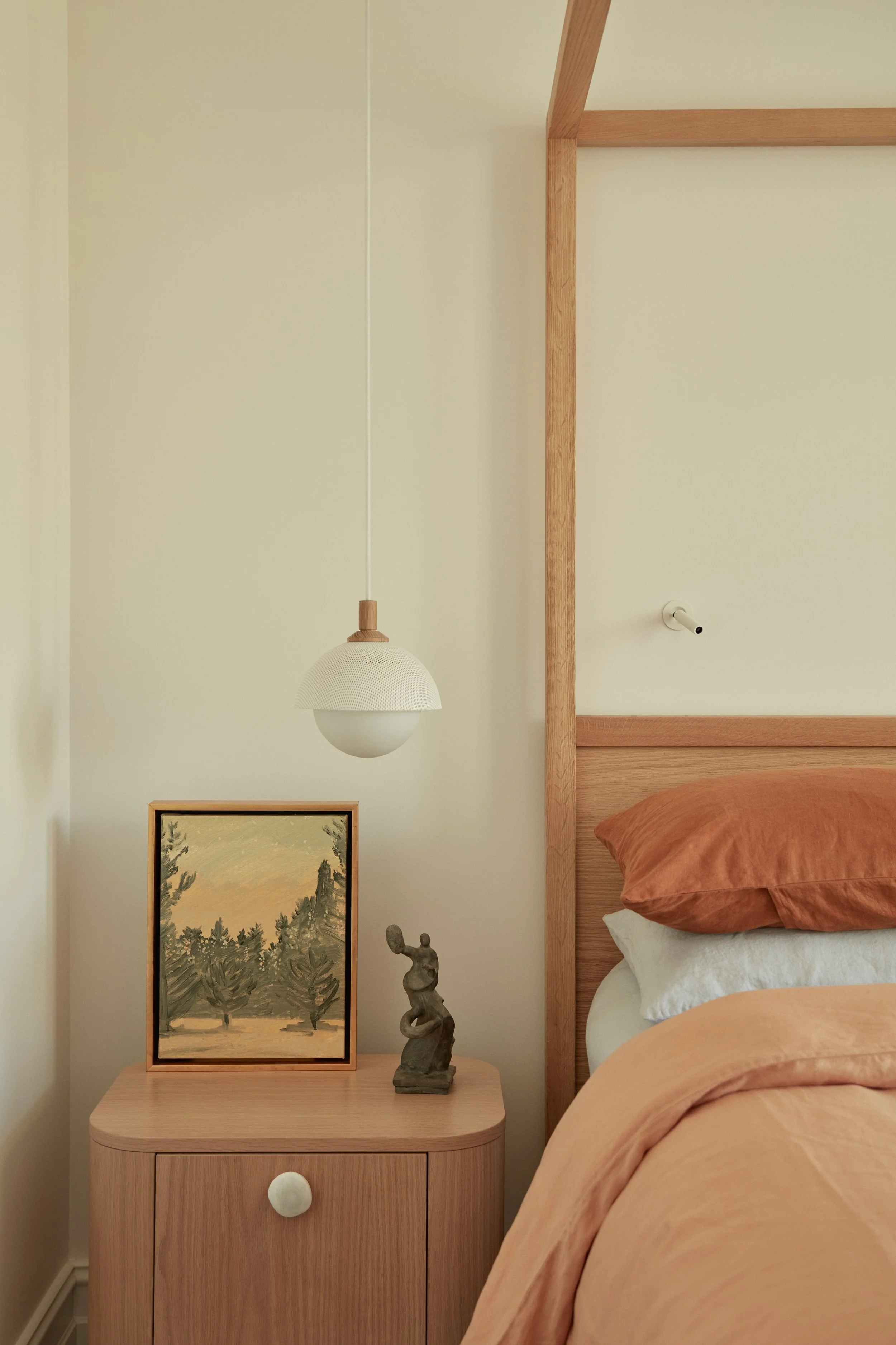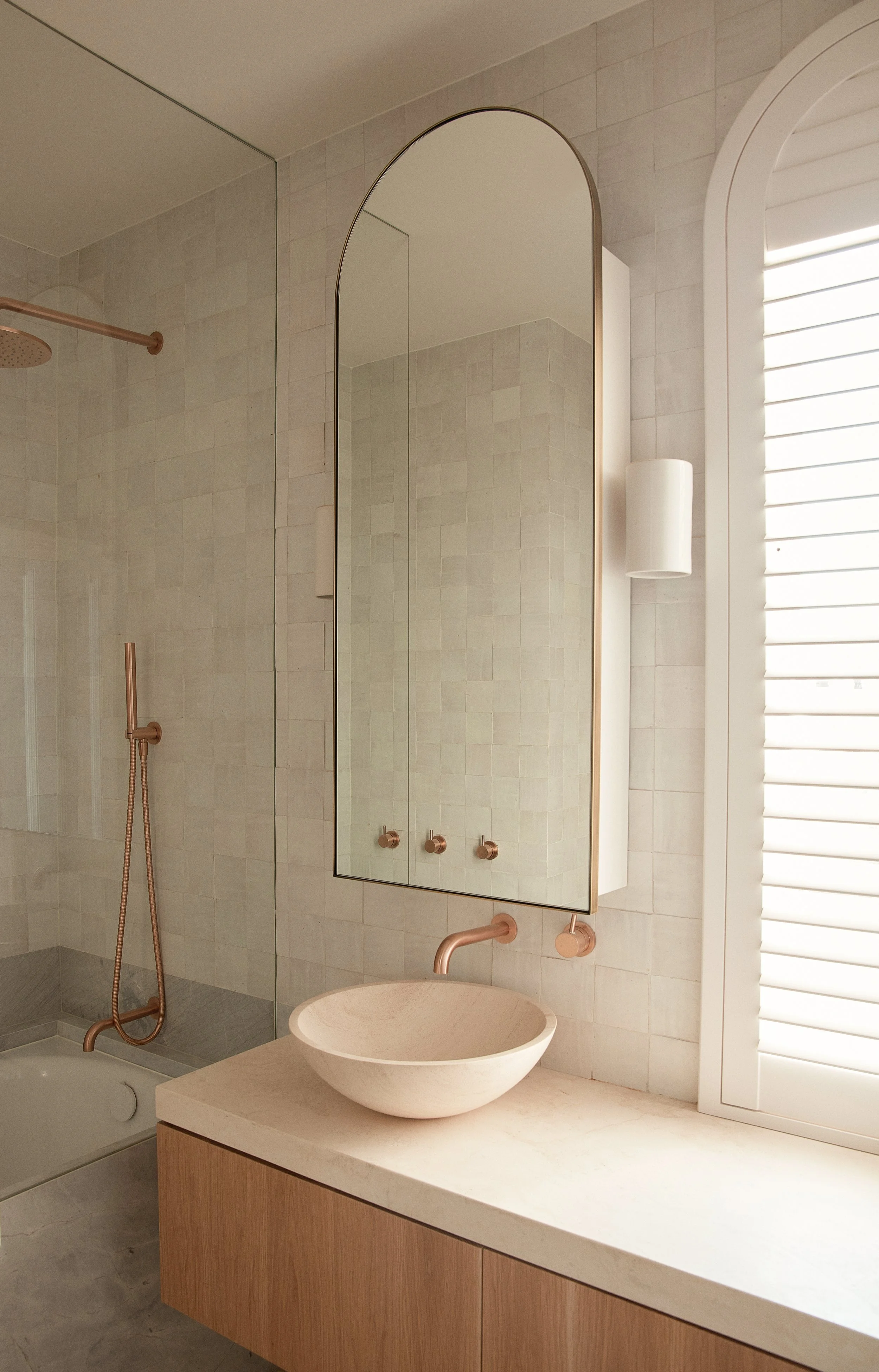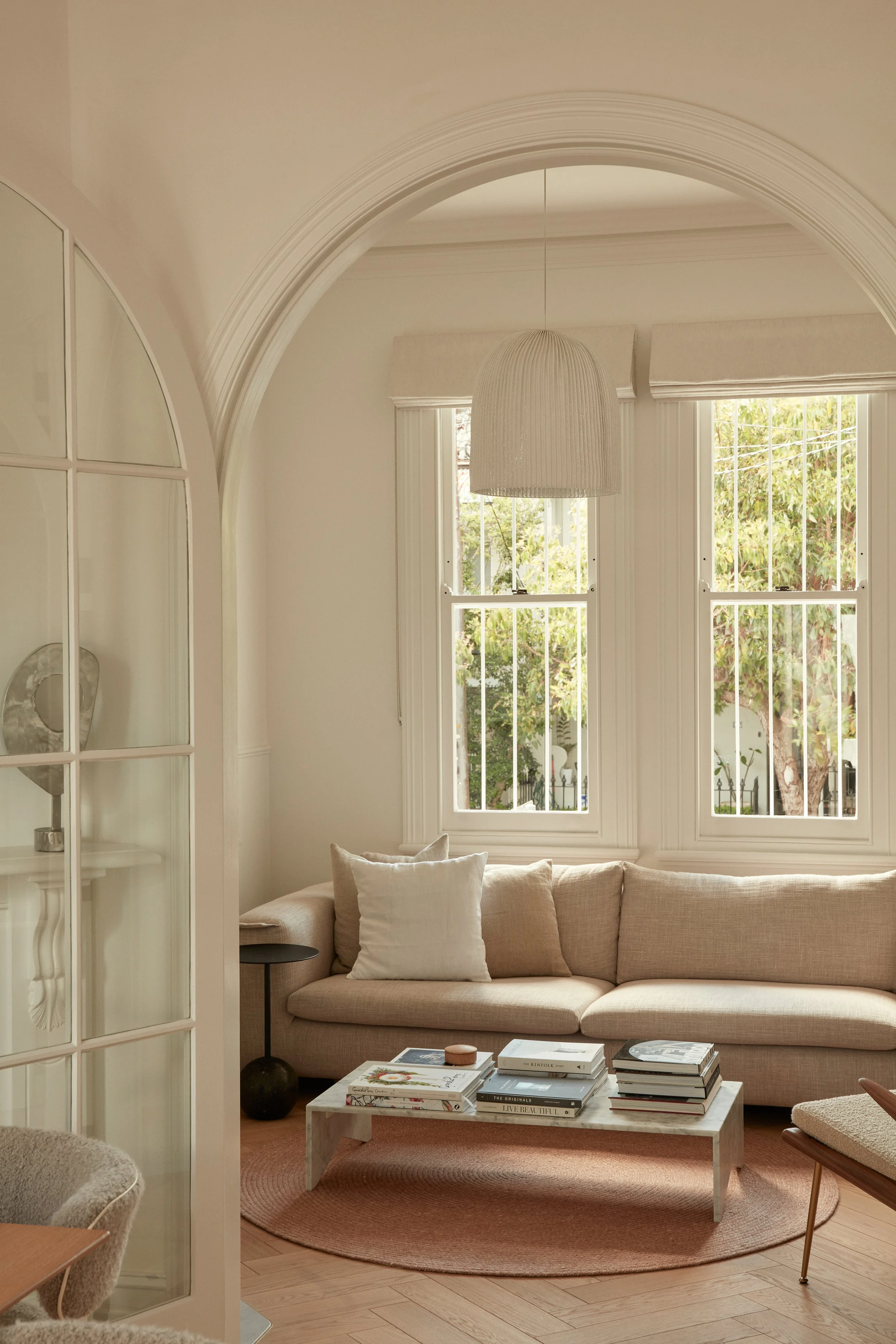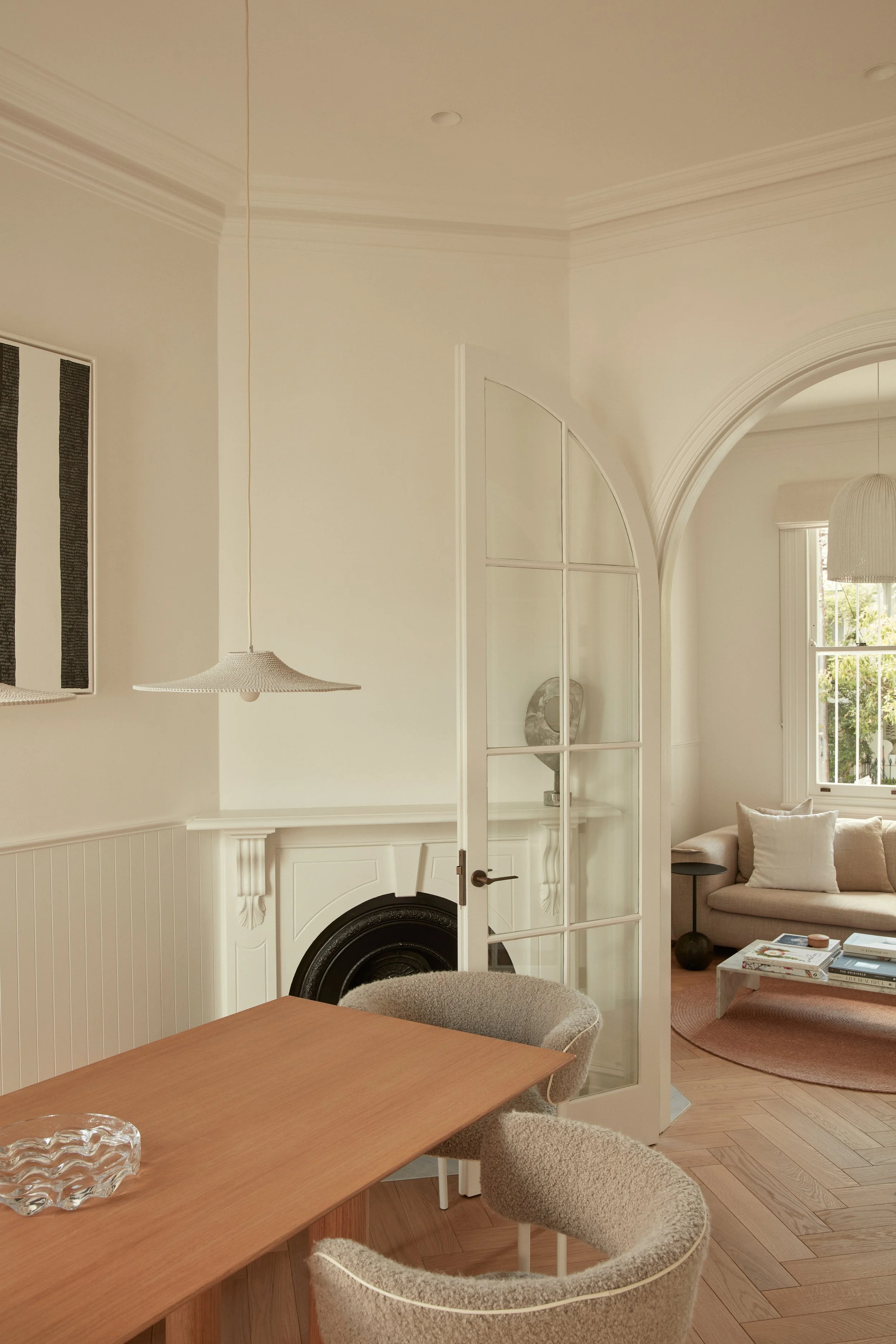 Interior designers SE DÉA optimised the interior of the terrace by reworking the floorpan and injected a soft, subdued palette throughout the spaces. The interior is a reflection of the owners’ style: subtly feminine, full of gentle textures, warmth, hints of blush and curving forms.