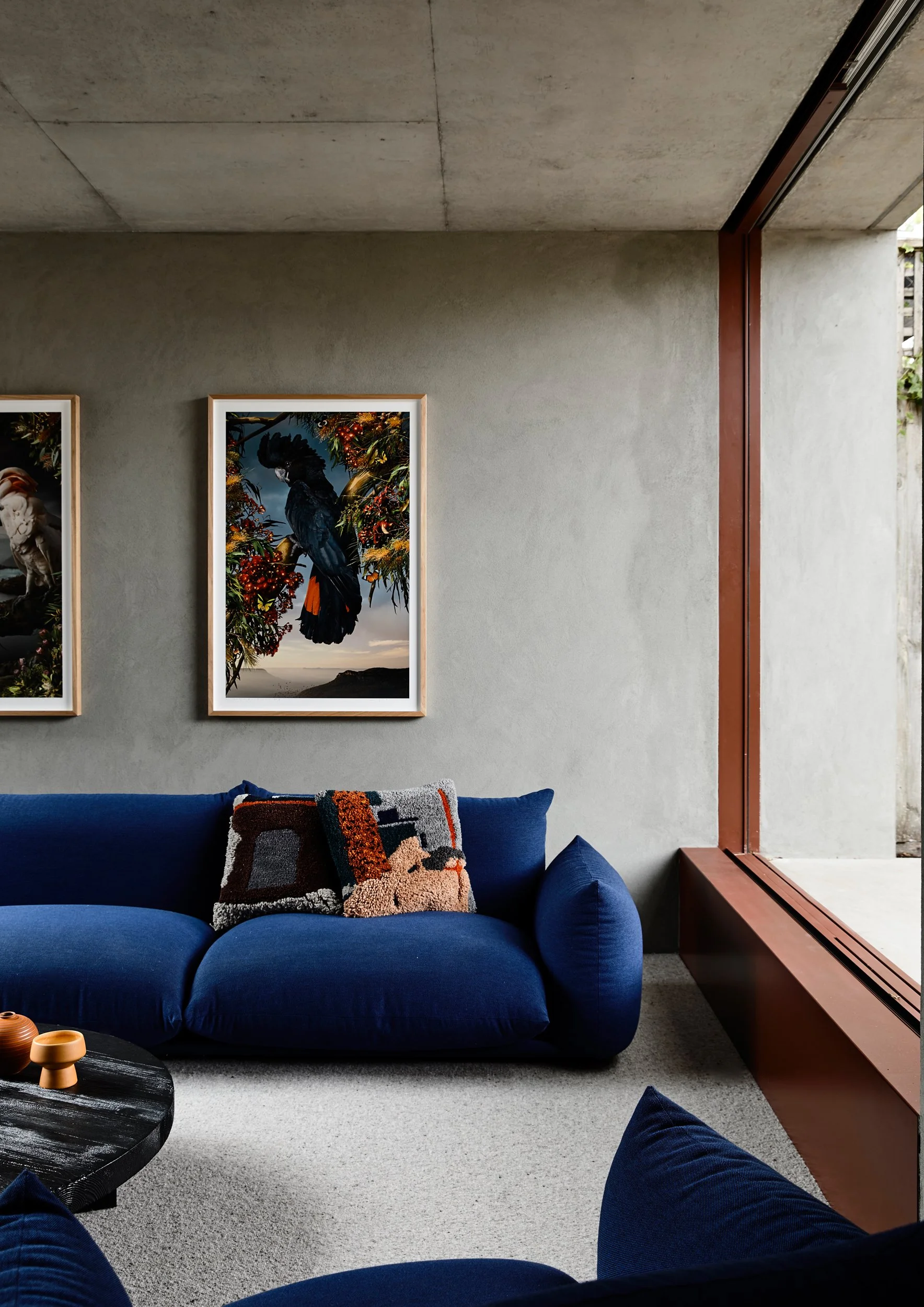 Soft furnishing details are a contrast against the heavy materials such as concrete used throughout. Photo: Derek Swalwell