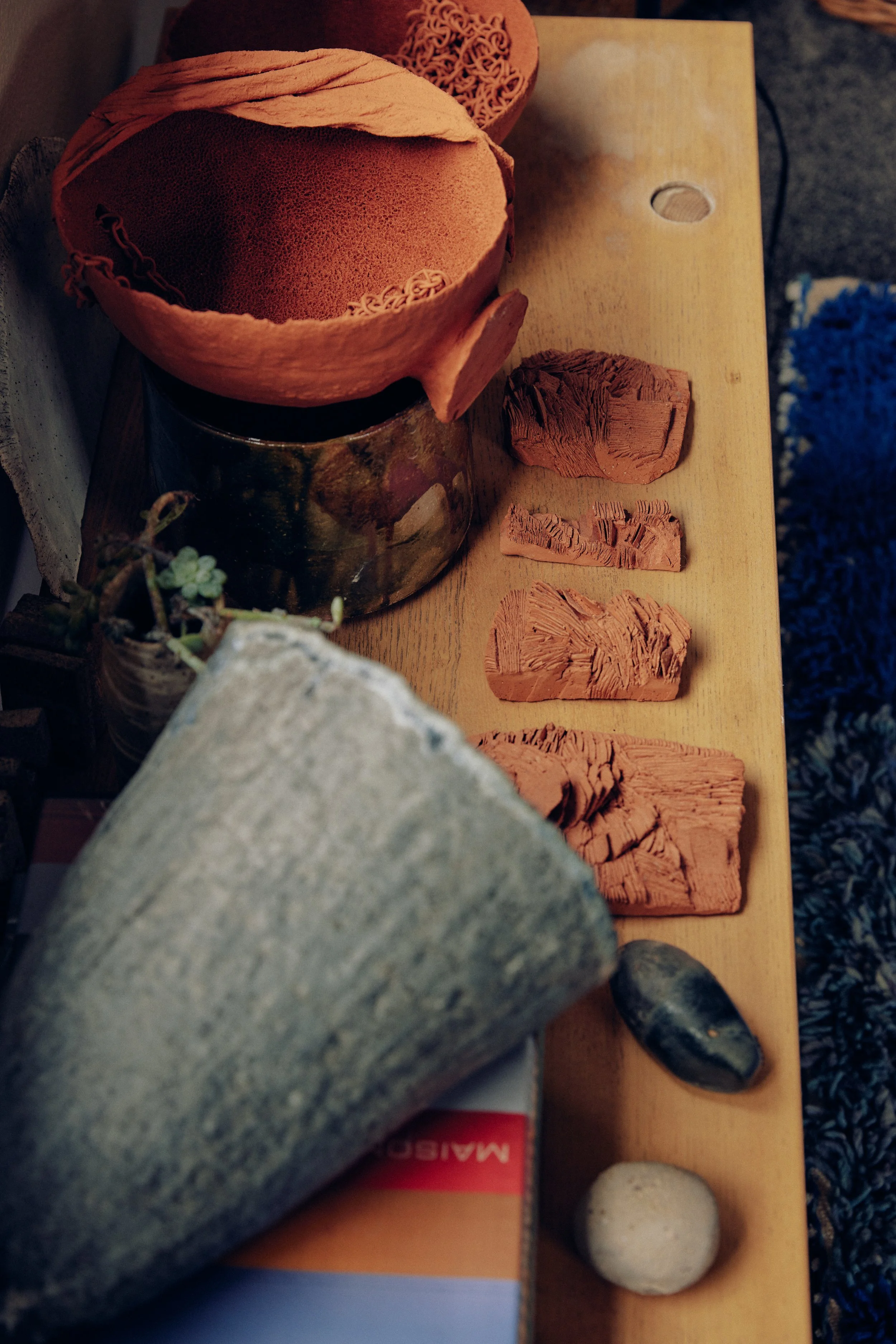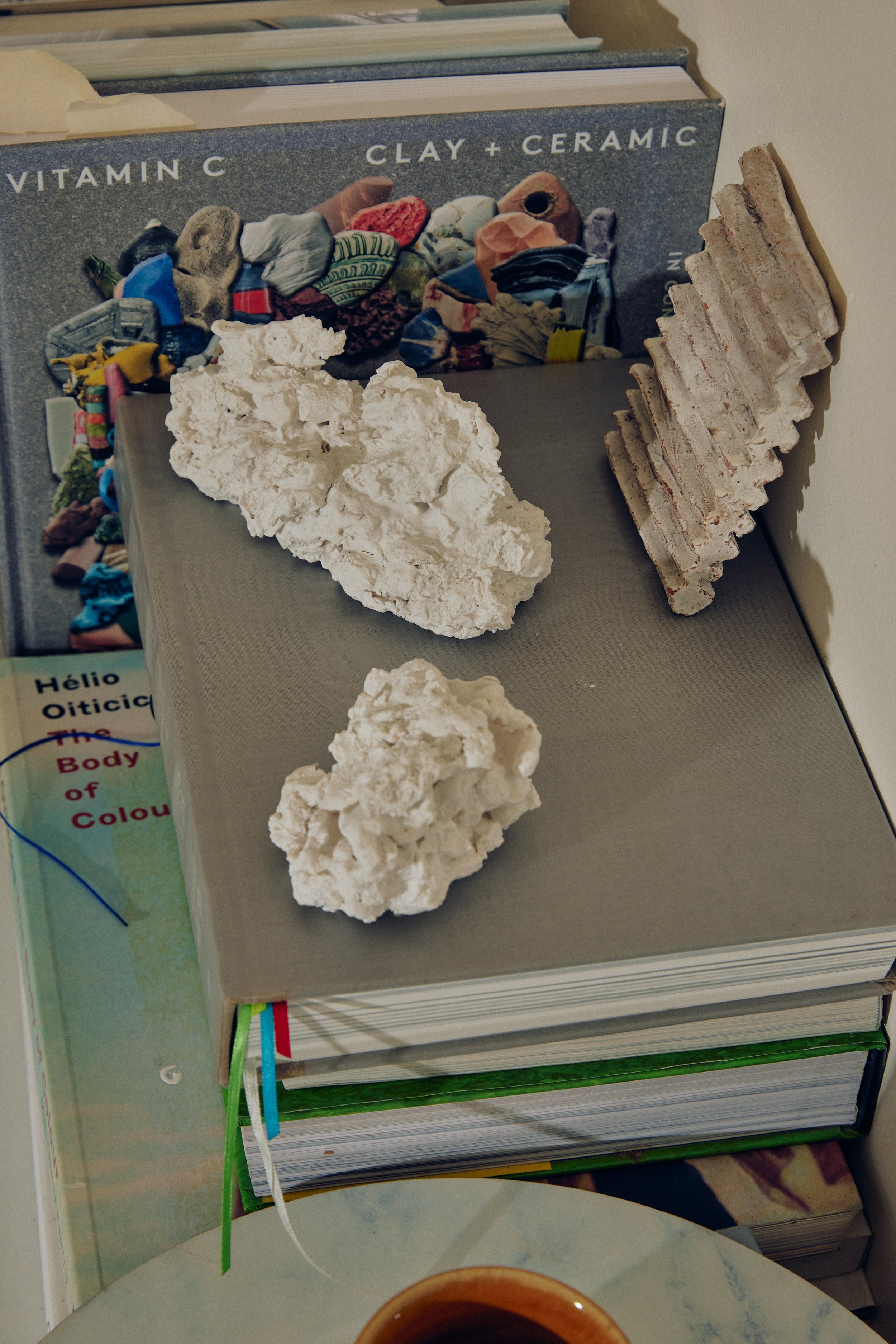 ‘I make my pieces on what would normally be the kitchen table in any other scenario, luckily, I also love to cook, so there’s a strange sense of continuation as I seamlessly slip from ceramics to cooking something. I guess sometimes that is how I get myself into a mood to create something with clay, I might start by making a big batch of soup!’