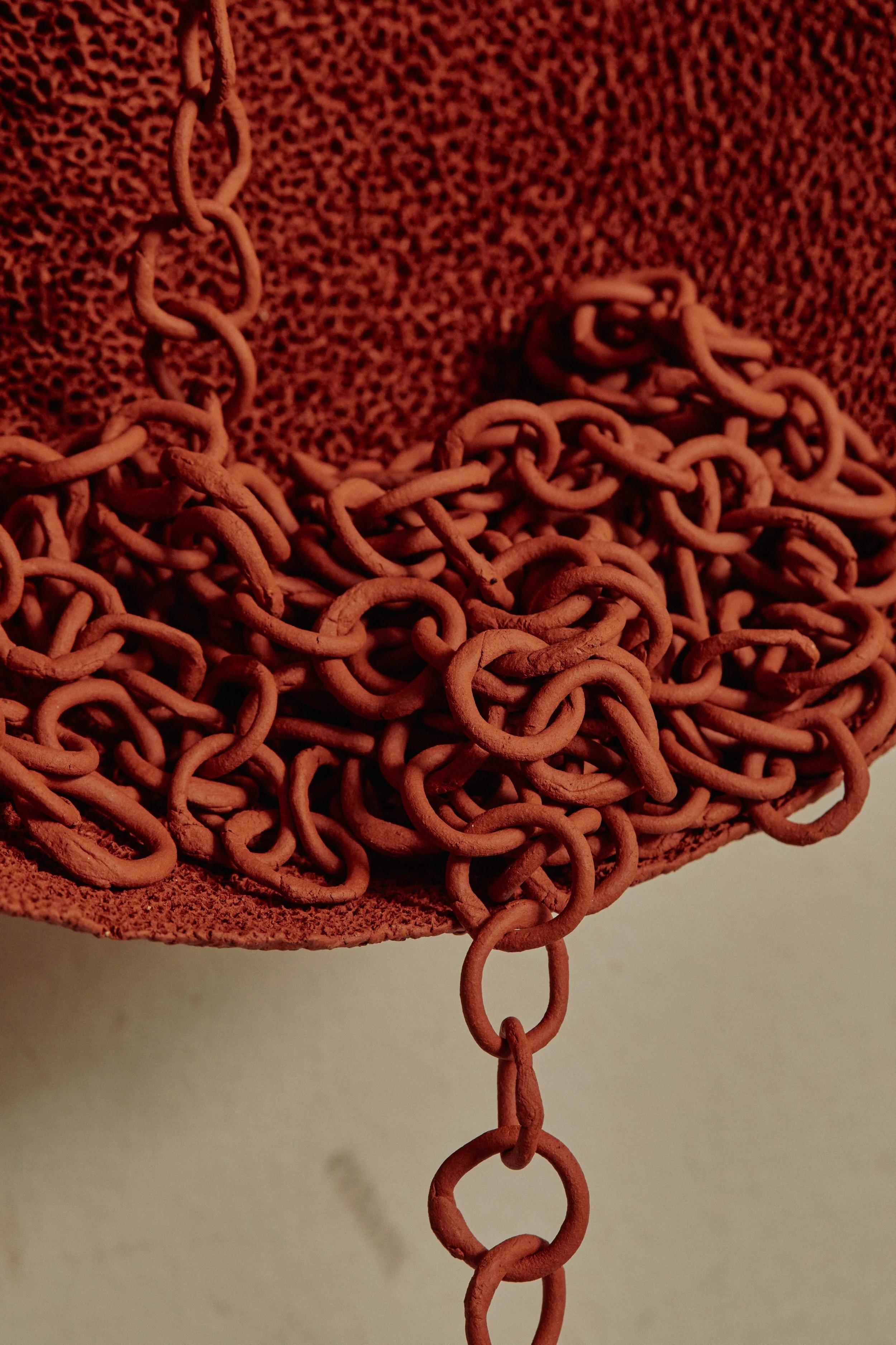 For her strikingly abstract works, Pip incorporates multiple hand-building techniques and avoids becoming constrained by forms and ideas that sit within the traditional realms. Whether adopting techniques such as coiling, slab-building or carving, she freely creates notions of movement within the rigidity of fired pieces, evoking a sense of organic fluidity. Her latest works feature delicately constructed chains, which further this idea and are hard to believe they’re made by hand.