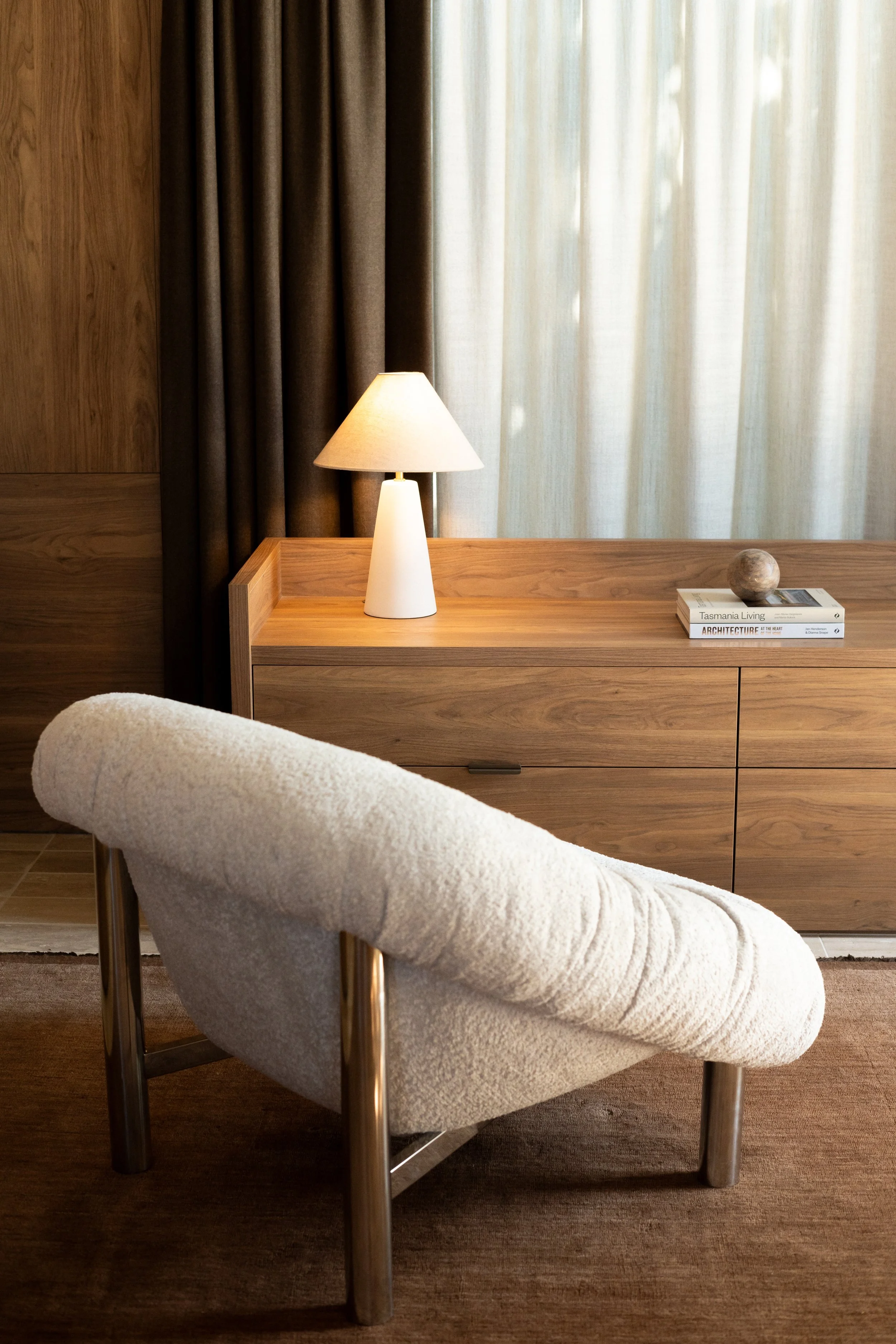 Moving beyond purely the sense of sight, the collection leans heavily into texture and tactility, adding layers of depth and dimension into a space. ‘Jessica created an immersive experience that went beyond the boundaries of the furniture pieces,’ says Marcel. The inclusion of the plush textures evoke emotion and connection, inviting the user to touch and explore the pieces. ‘In a world where many experiences are increasingly digital and detached, emphasising texture and tactility in our homes can foster a deeper connection to the space you are in,’ Marcel says.