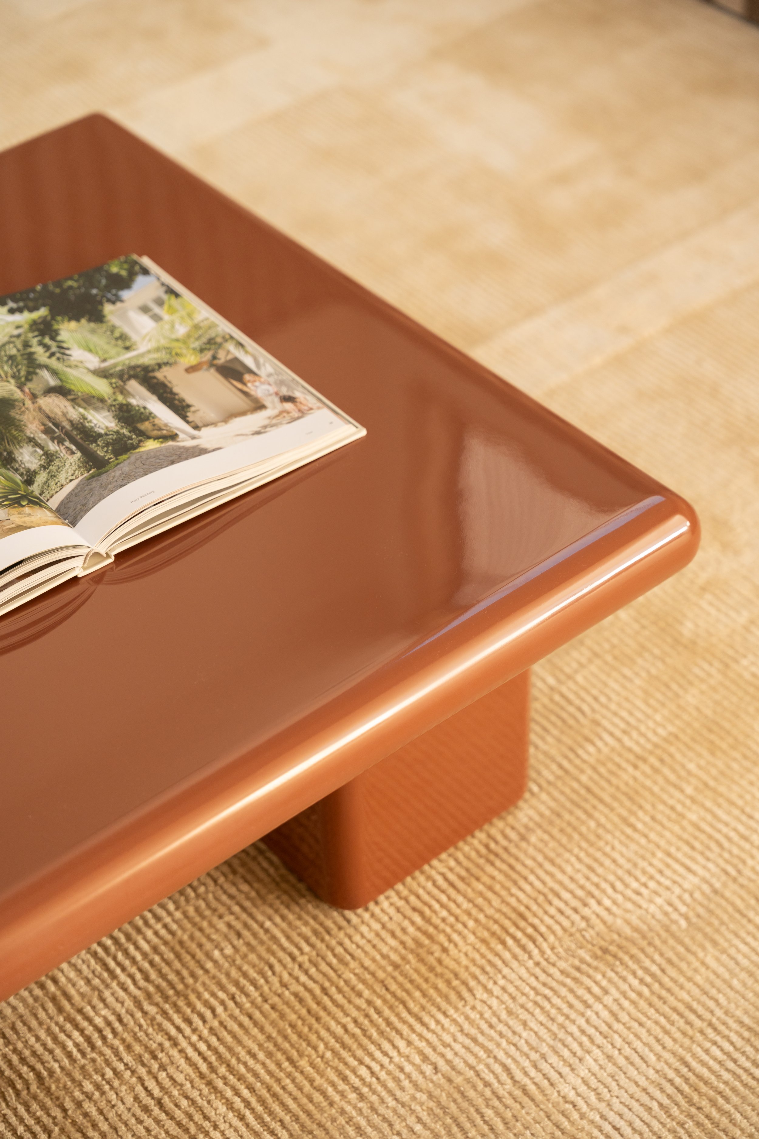 In the living space, Toto brings saturated colour and a high-gloss sheen—its rounded corners and generous surface anchoring conversation while playing beautifully against matte upholstery and rugs.