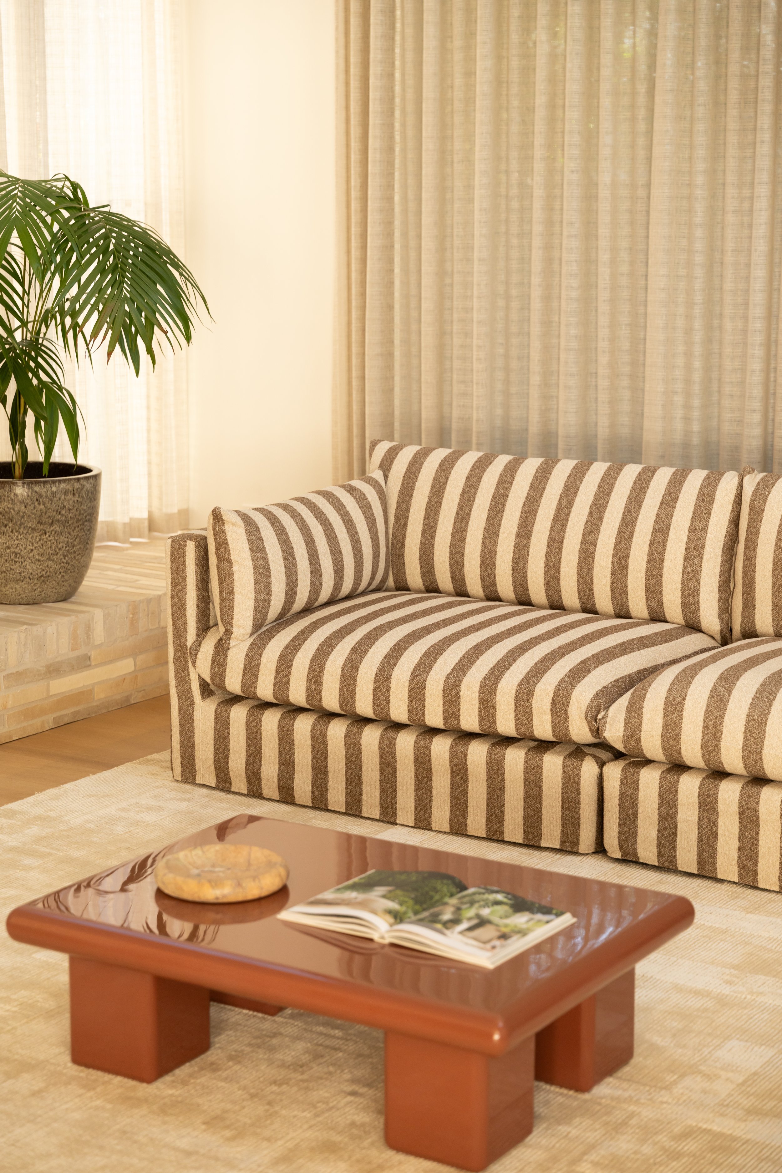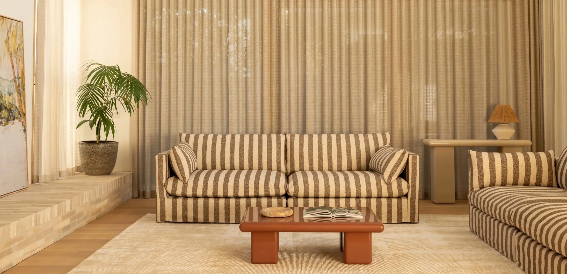 The collection’s stripes arrive as an easy, coastal rhythm in sofas like Sidney, whose modular, slip-cover format favours longevity and flexibility as rooms evolve. Together, these signatures create a calm register: sculptural enough to catch the light, edited enough to recede when the room is in use. That balance echoes the brand’s broader trajectory—design-led, accessible, and increasingly present in Australian homes.