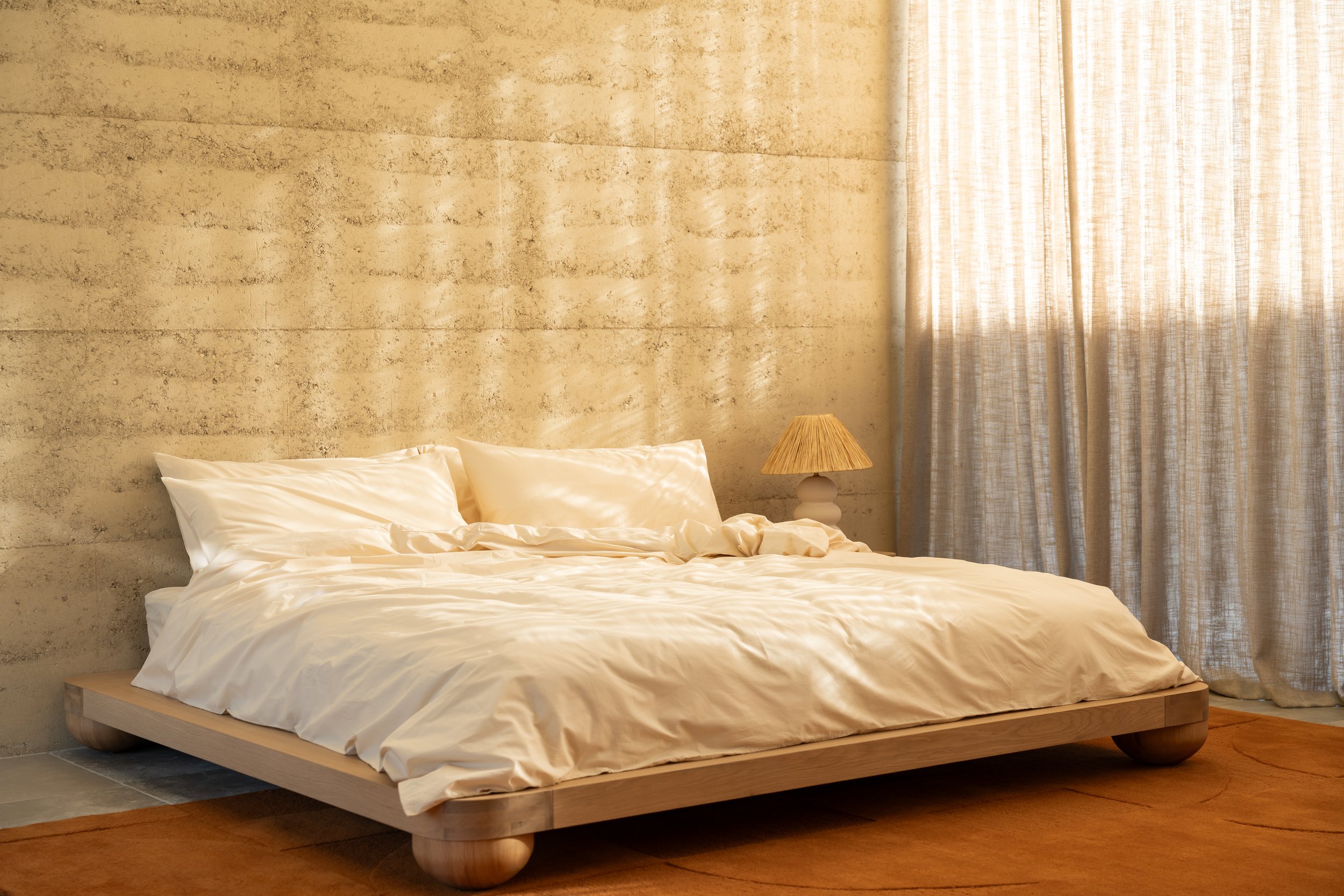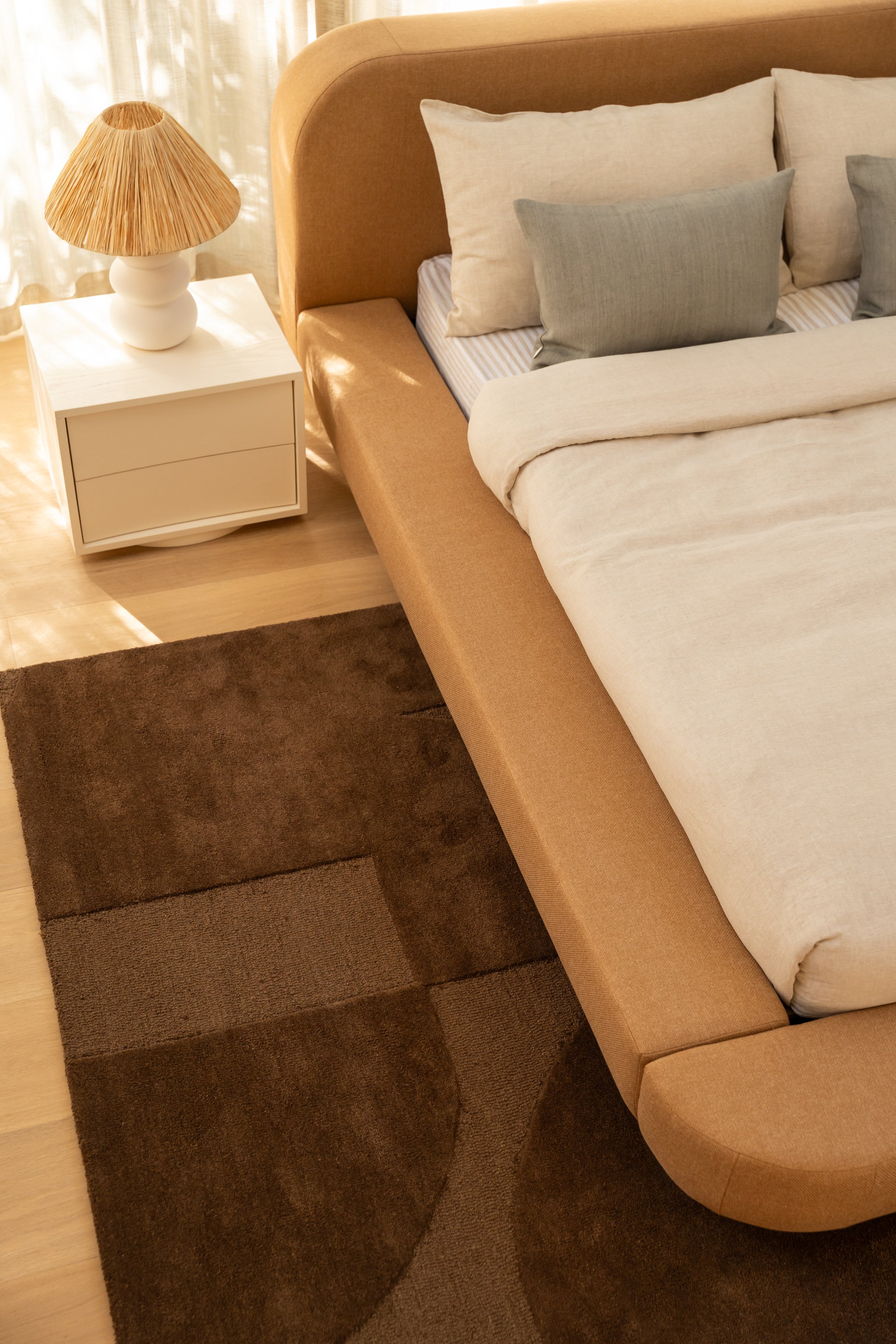 In the bedroom, Sunlit Forms explores rope’s tactility through timber and weave. The Compass Bed pairs an oversized, low-profile base with an integrated Danish paper-weave bench at the foot—part perch, part punctuation—bringing hotel-calm to daily ritual. The Weave Bed continues the thread, wrapping headboard, sides and footboard in fine Danish paper weave so light plays gently across the frame’s solid oak proportions.