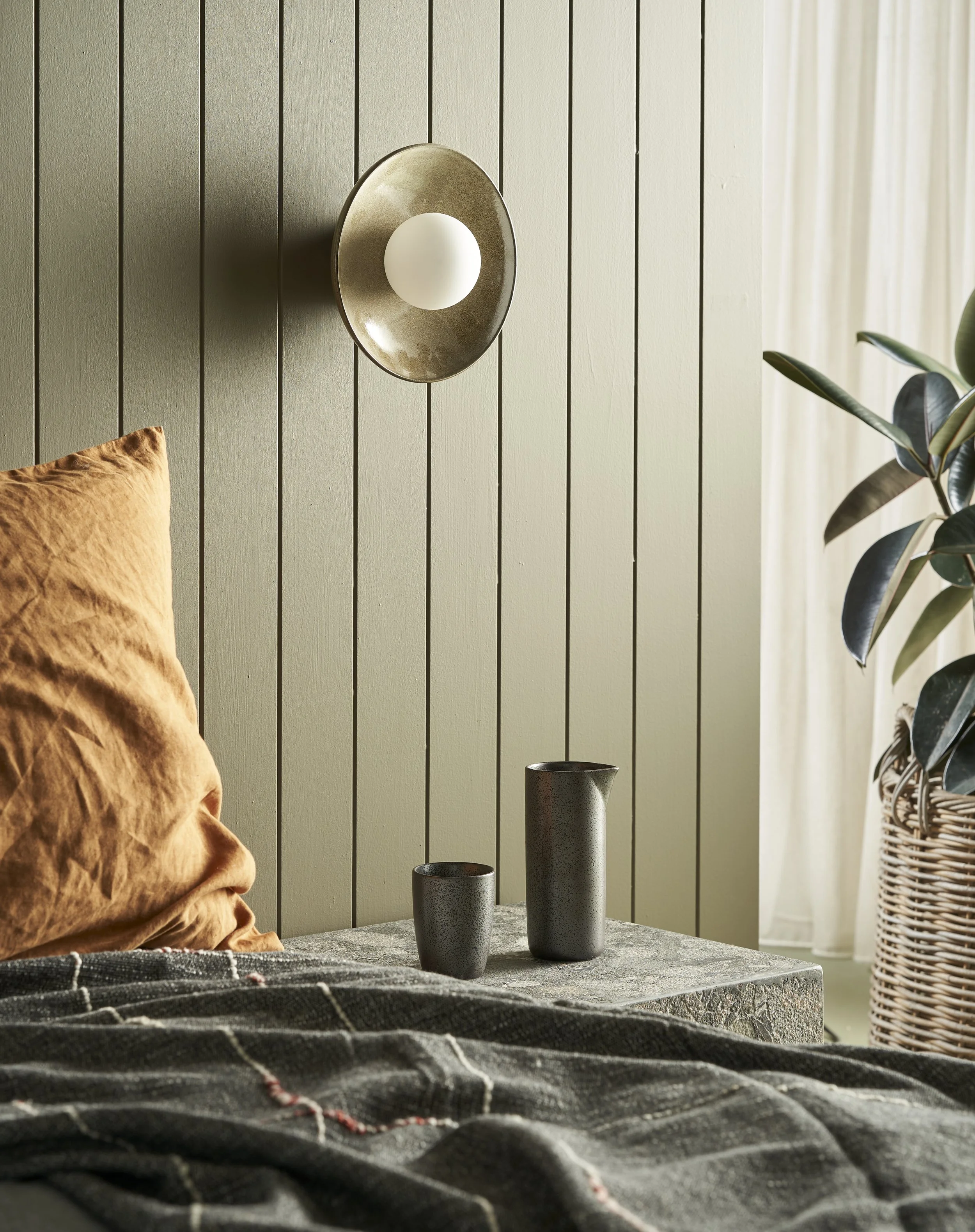 The Dish Wall Sconce in Saltbush by Robert Gordon Interiors. Photo: Jarrod Barnes. Styling: Hannah Gordon