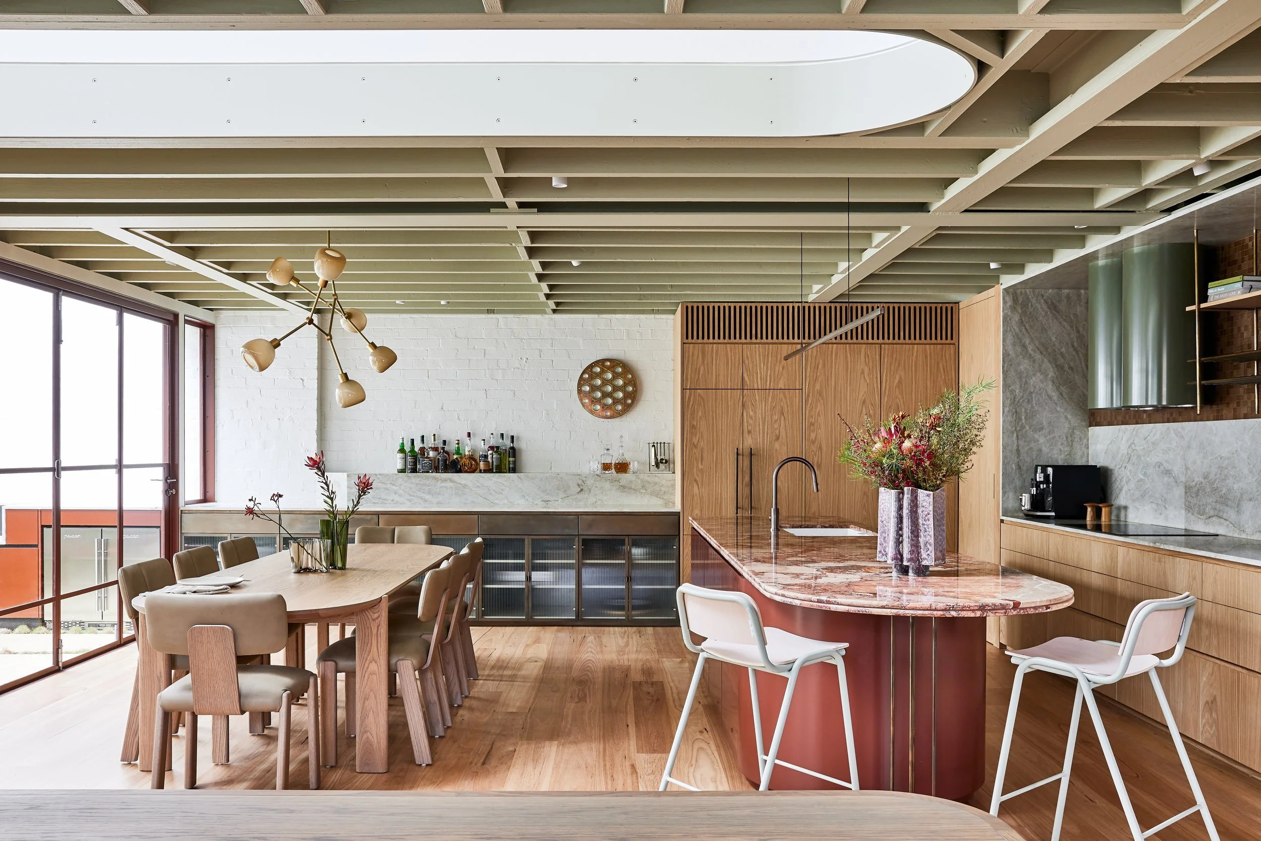 Rosso Verde, on Gadigal Country in Camperdown, is an alteration to an existing warehouse which draws on clever spatial planning, making the most of each inch of space, prevailing the notion that bigger is always better.