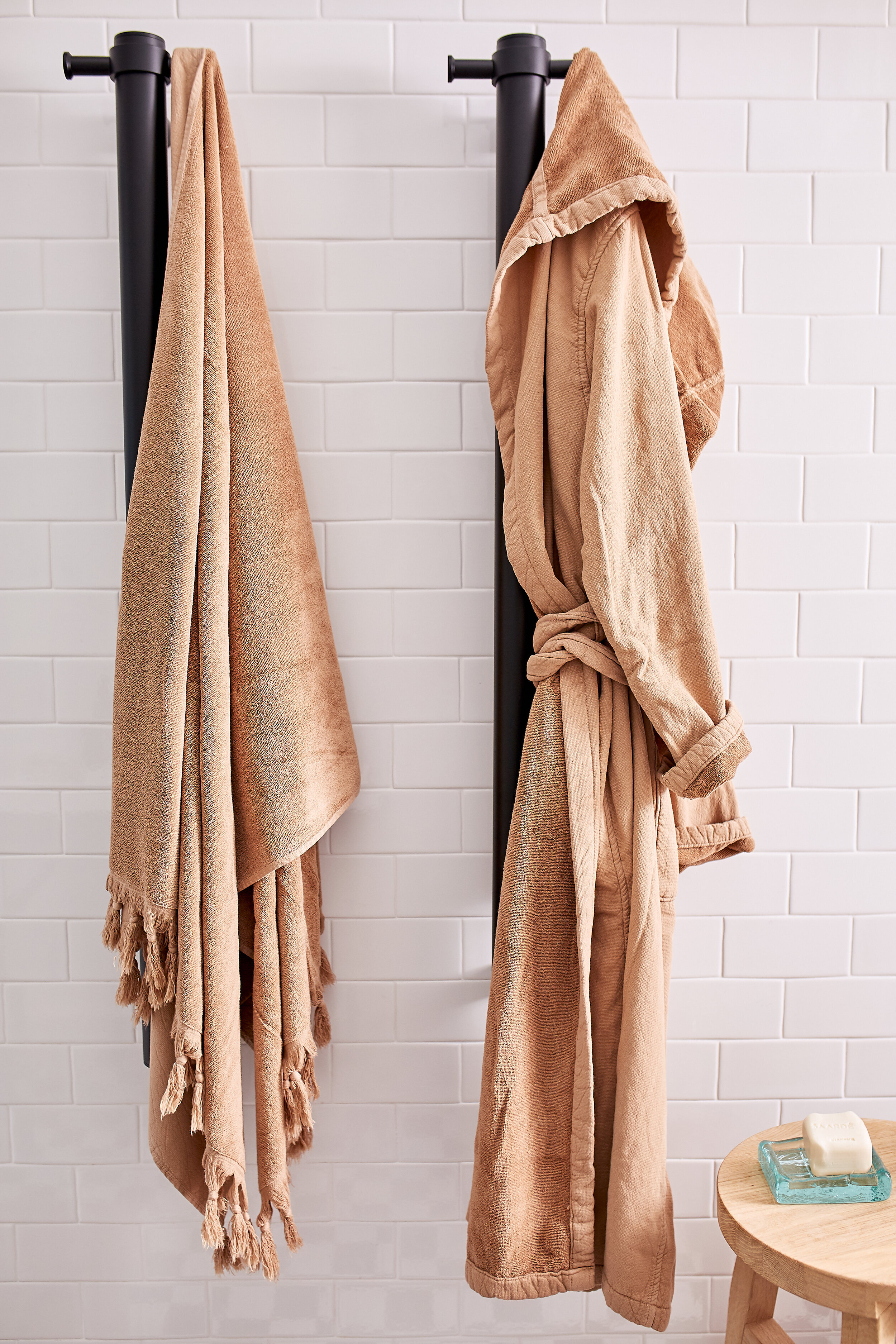 The Saardé collection includes a vintage wash towel and robe collection in colours such as Guava, Nutmeg and Tobacco. Shot on Location at Crane Lodge by The Life Style Edit