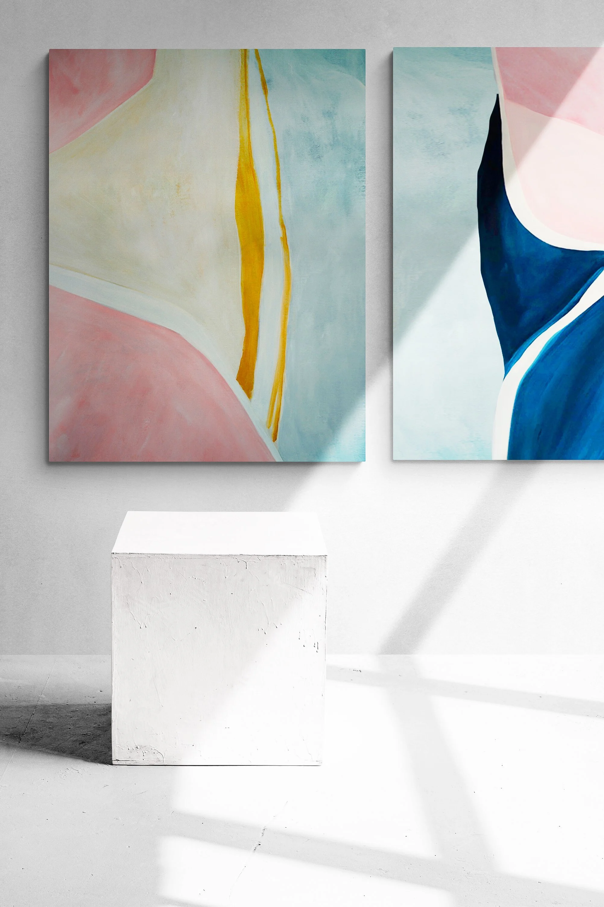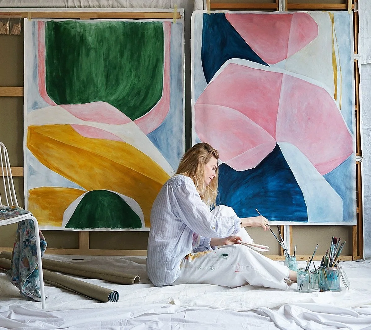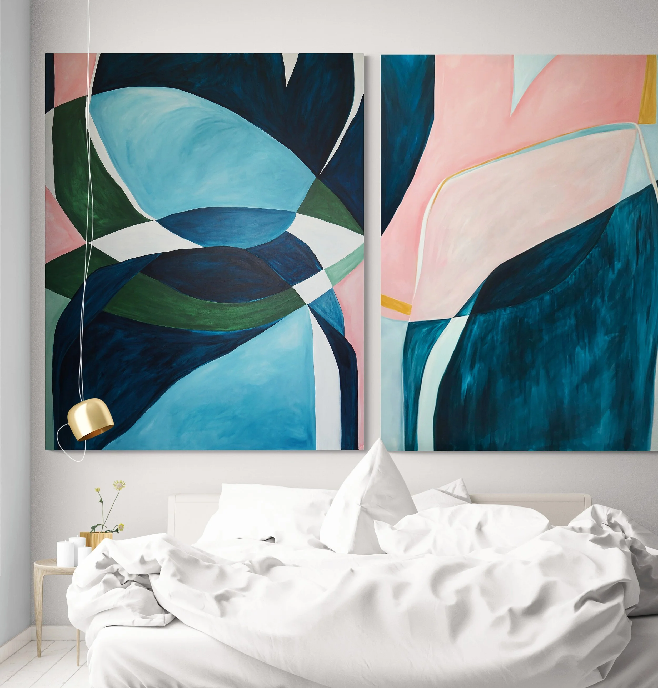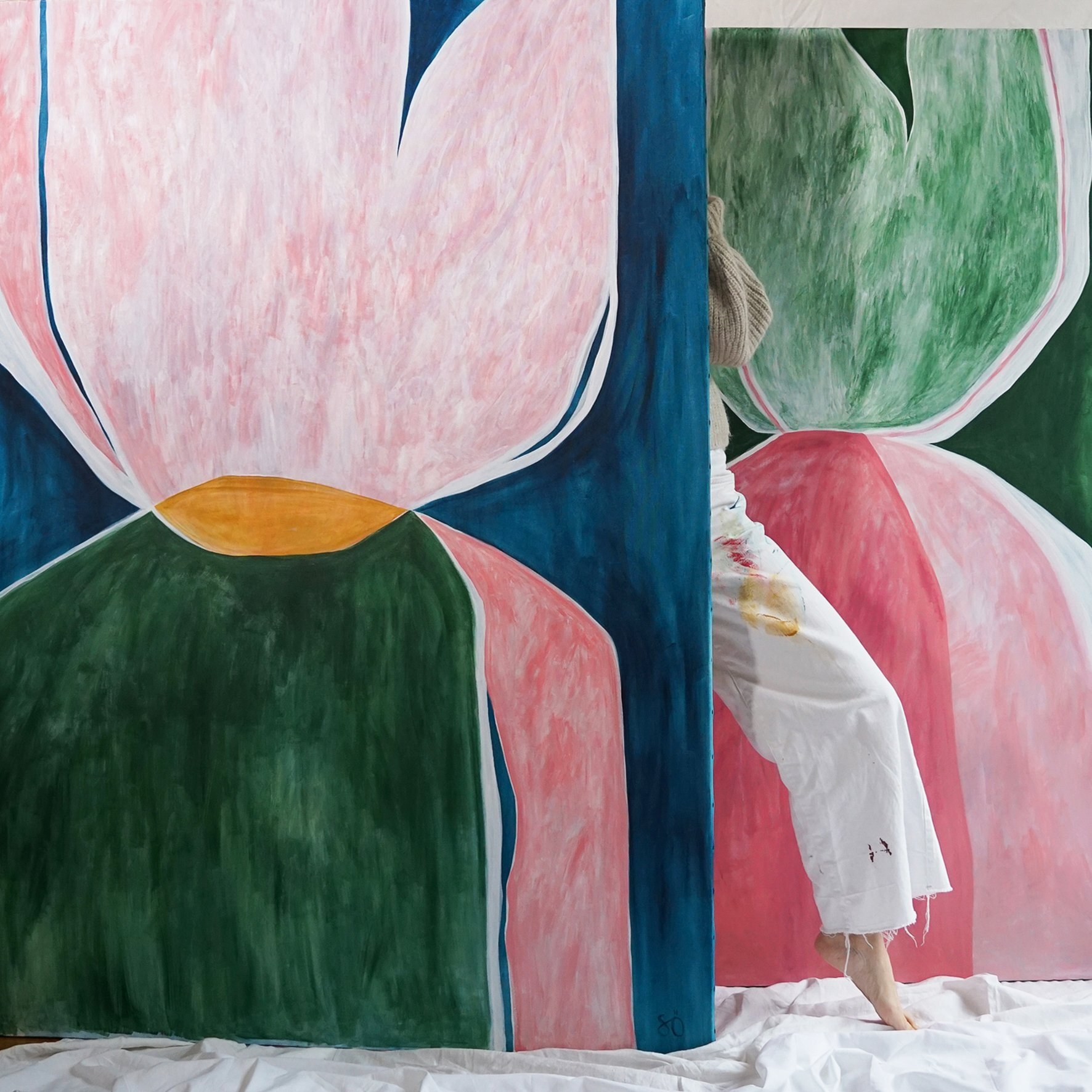 A pair of Sara Ödman’s large scale colourful abstract paintings. Photo: Courtesy of Sara Ödman