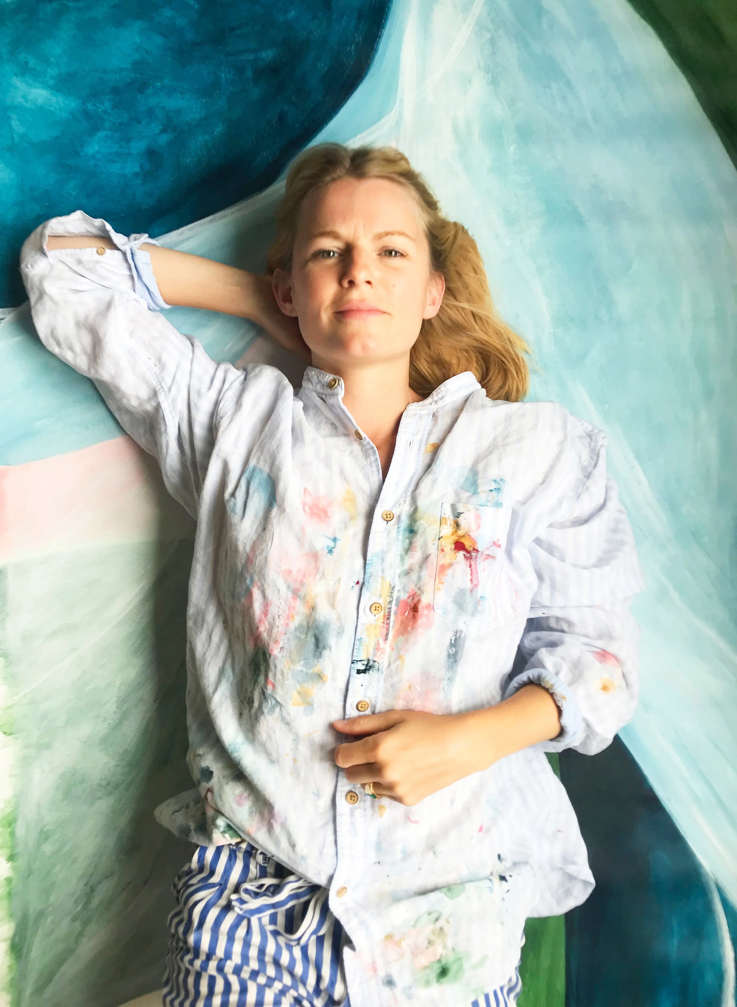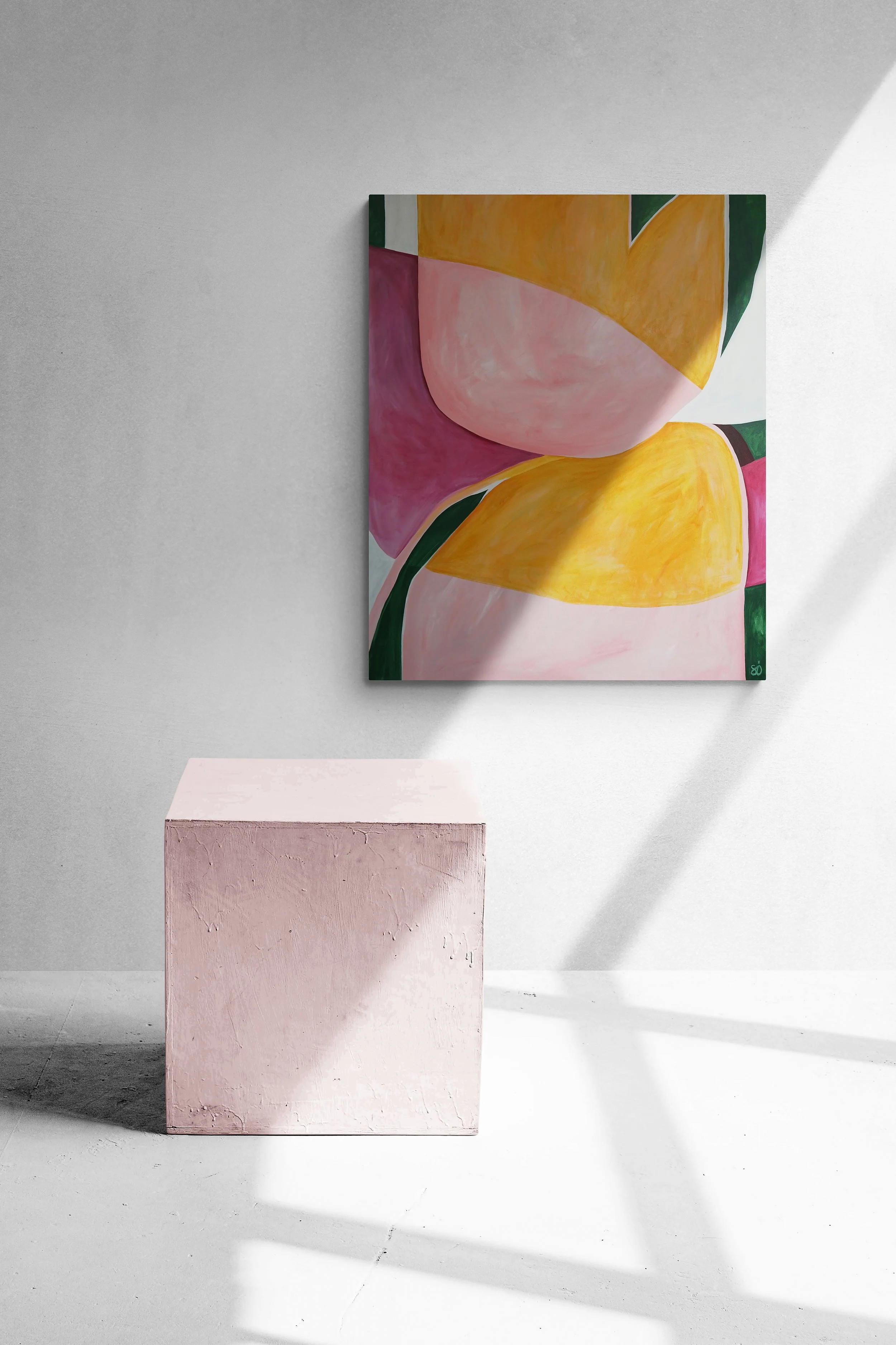 ‘Surrounded by the prairies and the ocean my entire childhood, nature is a big part of my roots and my source of inspiration, says Sara. ‘It’s an endless treasure with combinations of colours and shapes, and I love to play with that in mind creating abstract encounters in my paintings.’