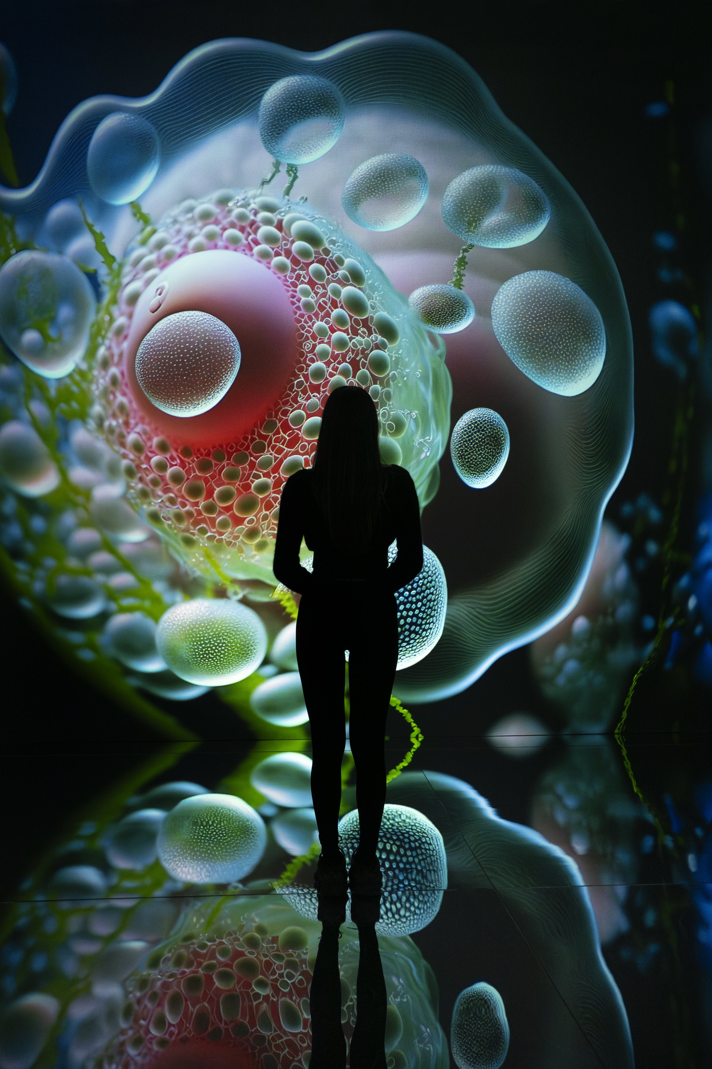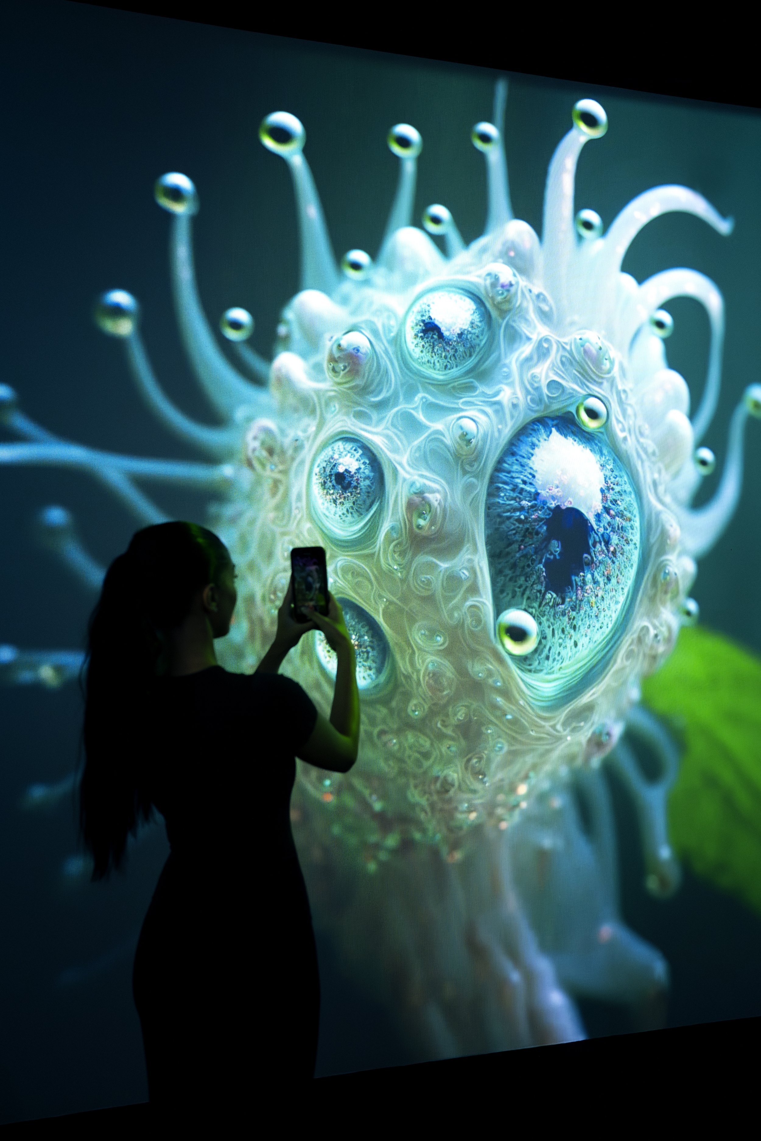 Formations Space ventures to the beginning of life itself. Inspired by the inception of the first cells, these biological creations reveal the intricacies of evolution through the lens of artificial intelligence. Photo: Courtesy of Illusionaries
