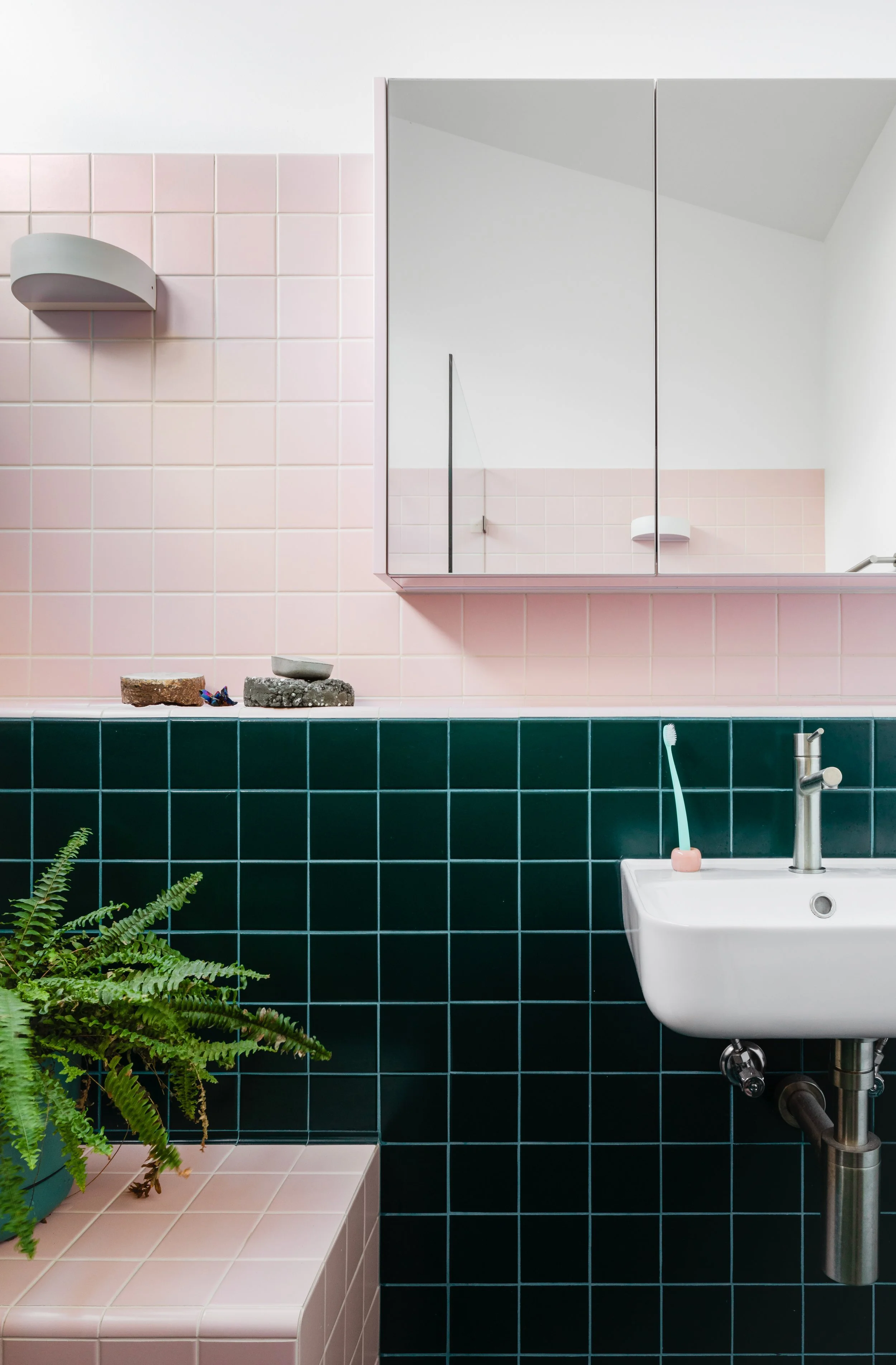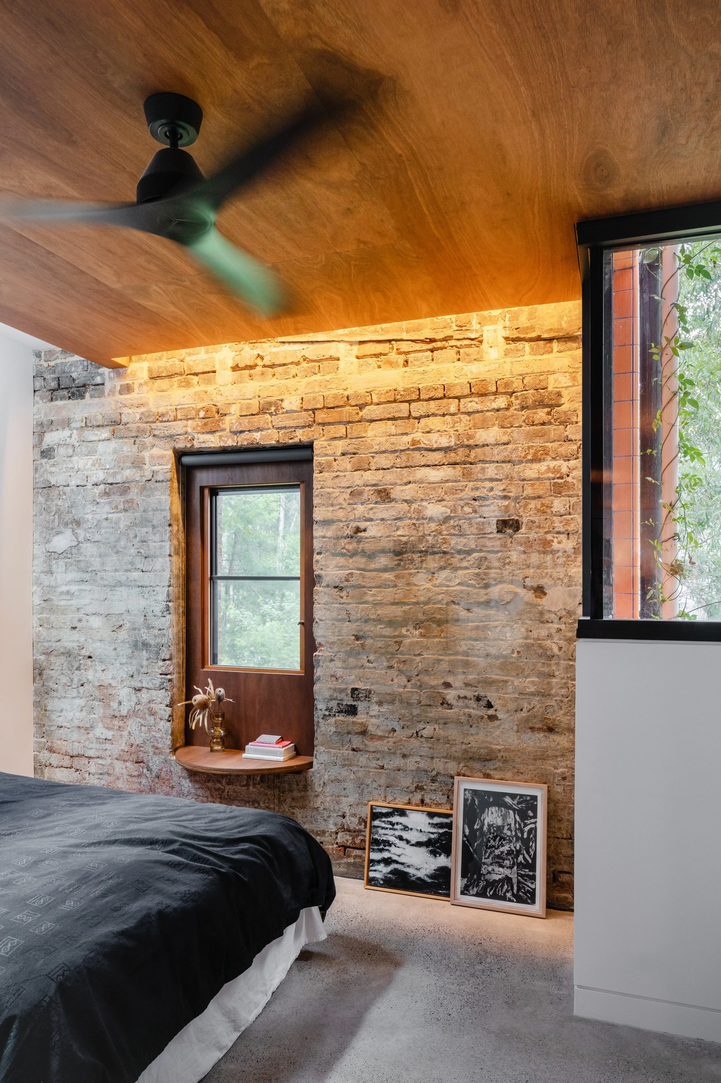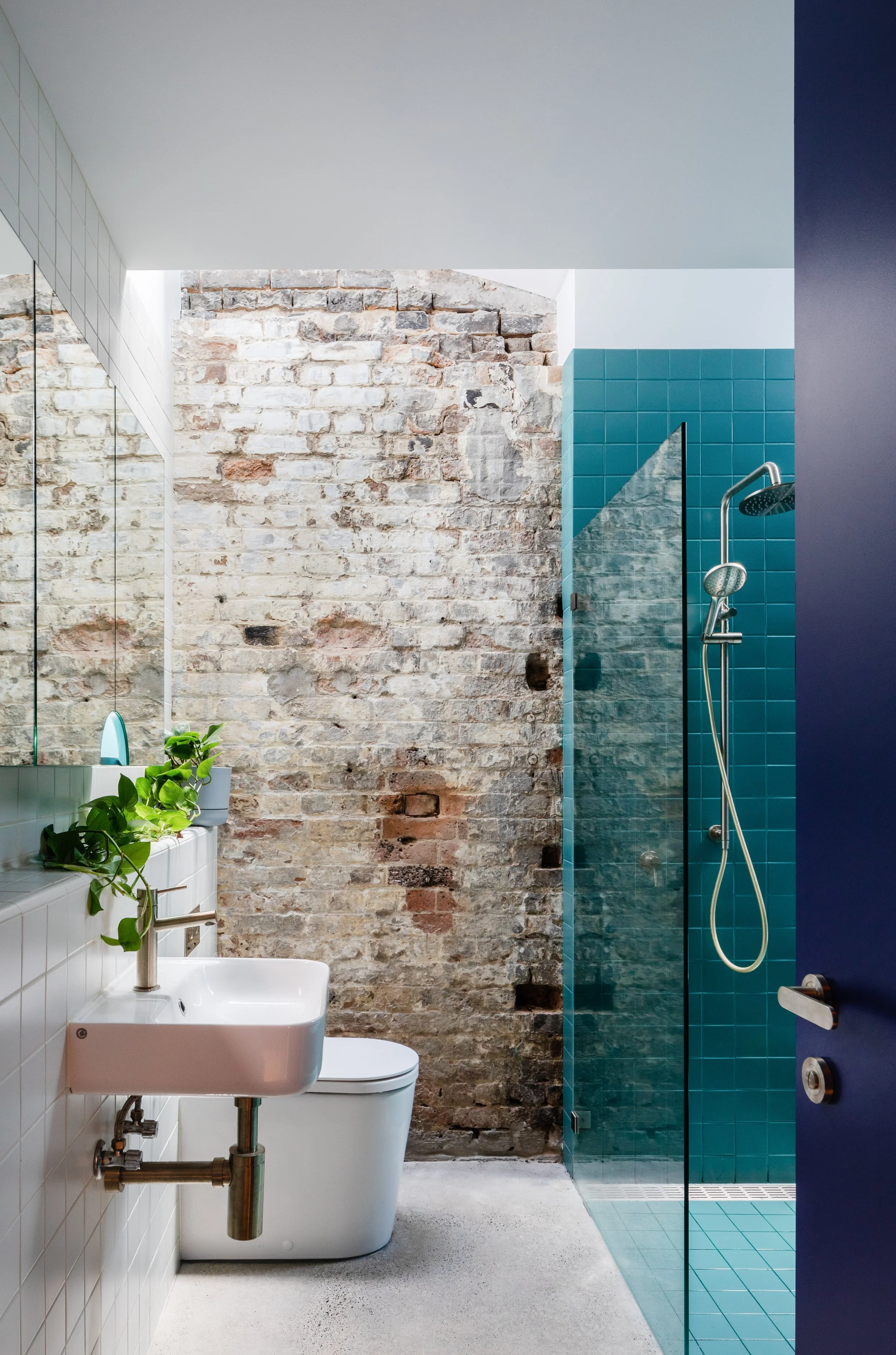 The existing brickwork is a feature in the bathroom. Photo: Katherine Lu