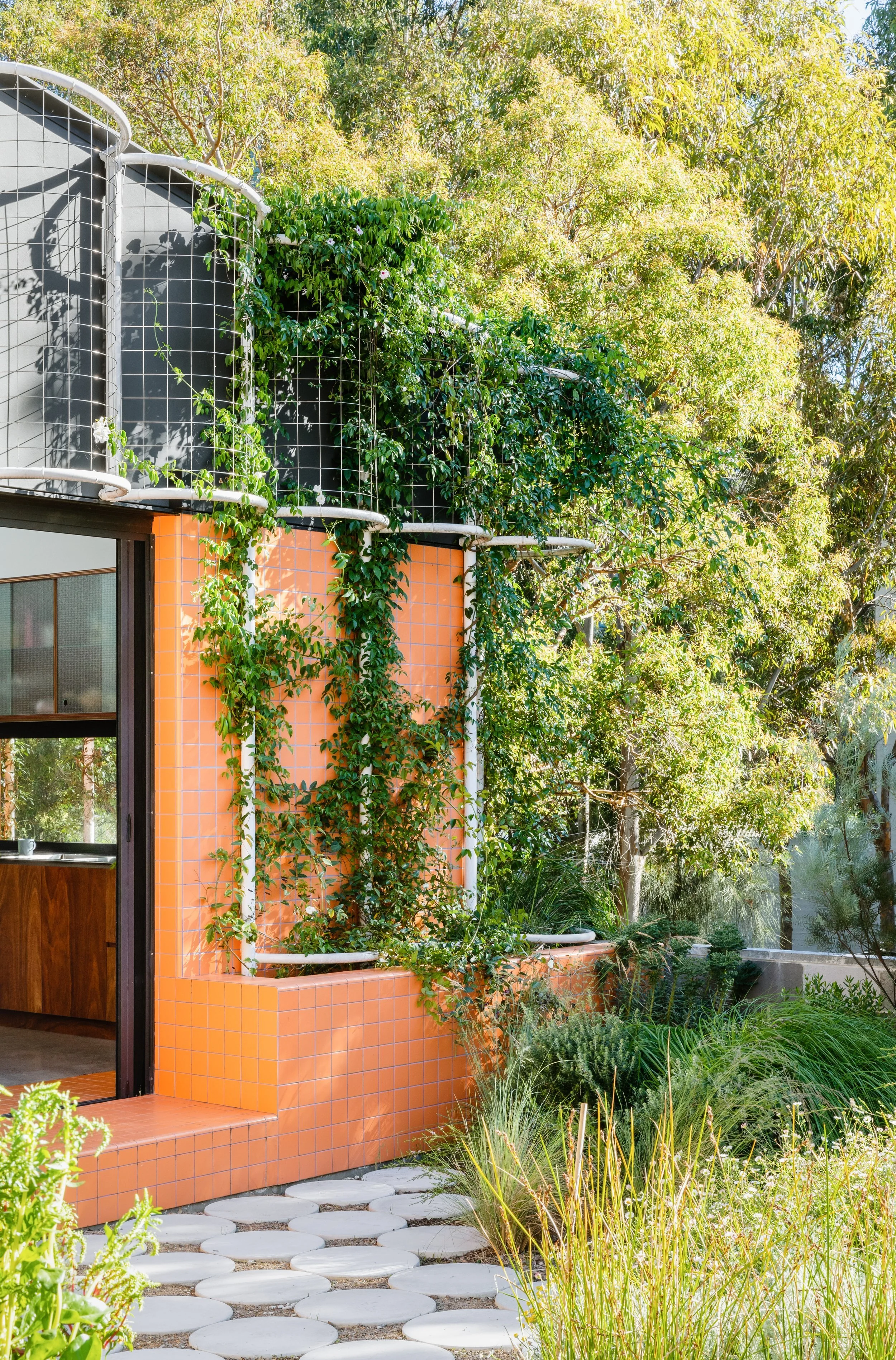 A trellis screen wraps around the building and provides a structure for foliage to grow through. Photo: Katherine Lu