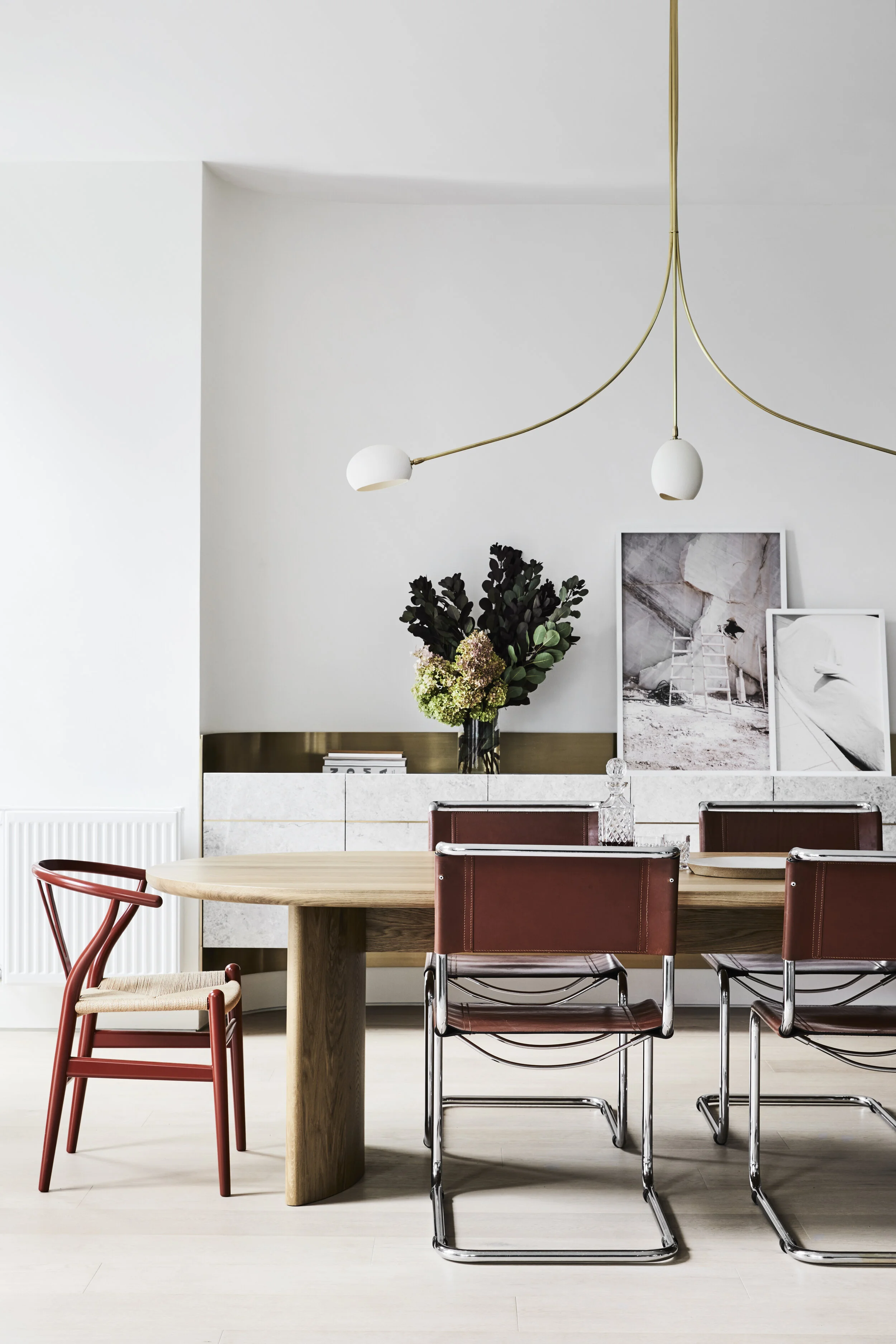 “We’re thrilled to collaborate with Reduxr to create bespoke pendants in the kitchen and dining areas. The dramatic and sculptural pendant that sits above the dining table is a personal highlight of this project,” shares Miriam Fanning. Photo - Sharyn Cairns.