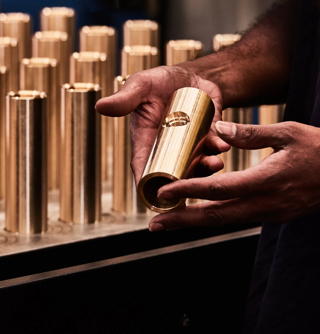 The fundamental underpinning of Vanessa's company is the recycling of old metal, bringing the material into its new life cycle that can push the limits of sustainability into superior design through a circular model. Sussex Taps boasts an environmentally conscious production: the off-cuts of metal are melted down in the foundry, creating a closed-loop system, while producing the objects onshore reduces carbon emissions. The factory received a recent installation of 100kw solar panels to reduce greenhouse gas emissions by 131 tonnes per year.