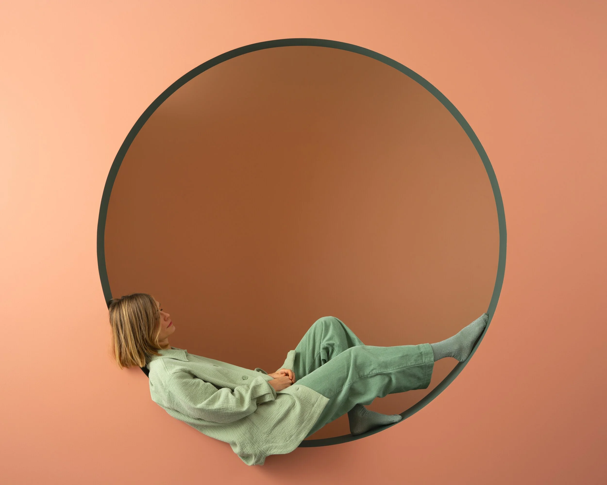 Scrolling through Severin’s Instagram account, it’s easy to get swept away in a sea of incredible colour schemes. We see images of Severin at home sitting on a sofa, in her pistachio green bedroom or walking through her bold kitchen. These are self portraits which blur the lines between her and the space, so that she becomes one with the design.