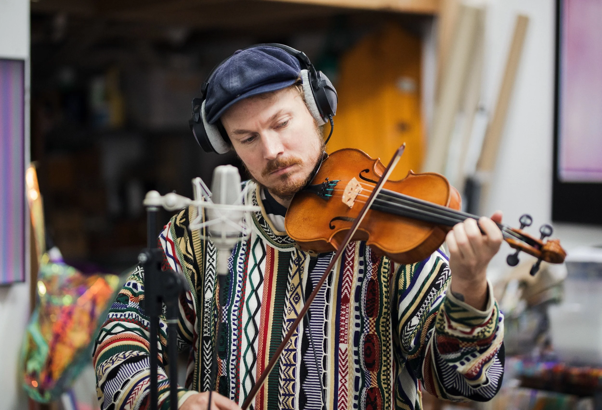 Sound and colour are an inherent part of Daniel’s art practice. From a young age, he’s experienced synaesthesia when learning the violin and flute, meaning he sees musical notes as colours.