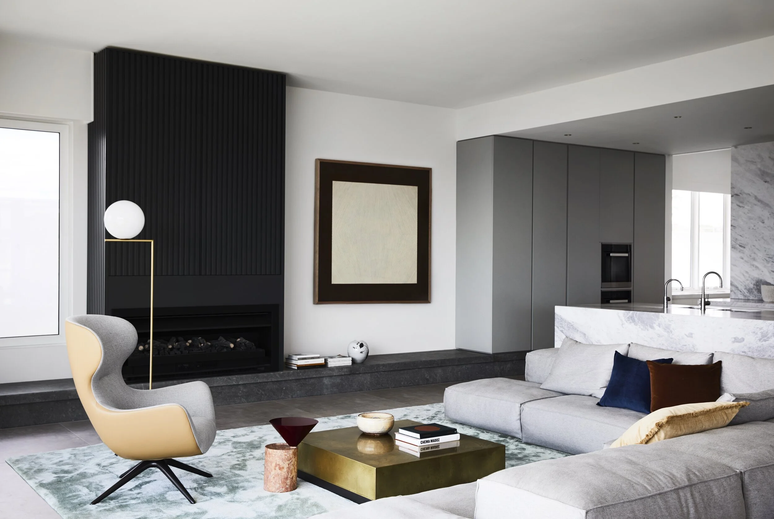 Within the main living space, lofty ceilings are grounded with a measured textile palette, over-scaled furniture and a depth of tactility designed to enliven the senses and encourage warmth.