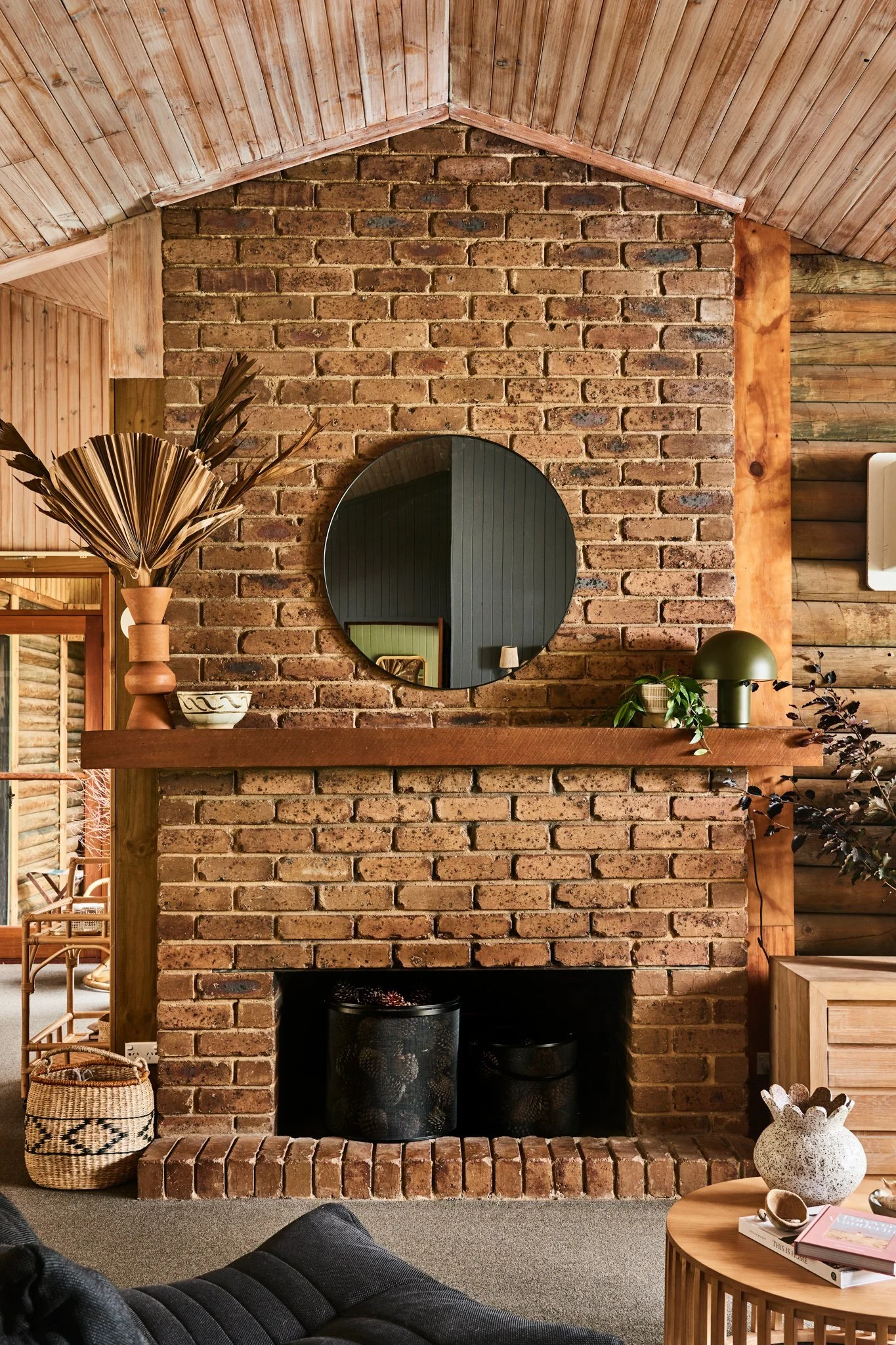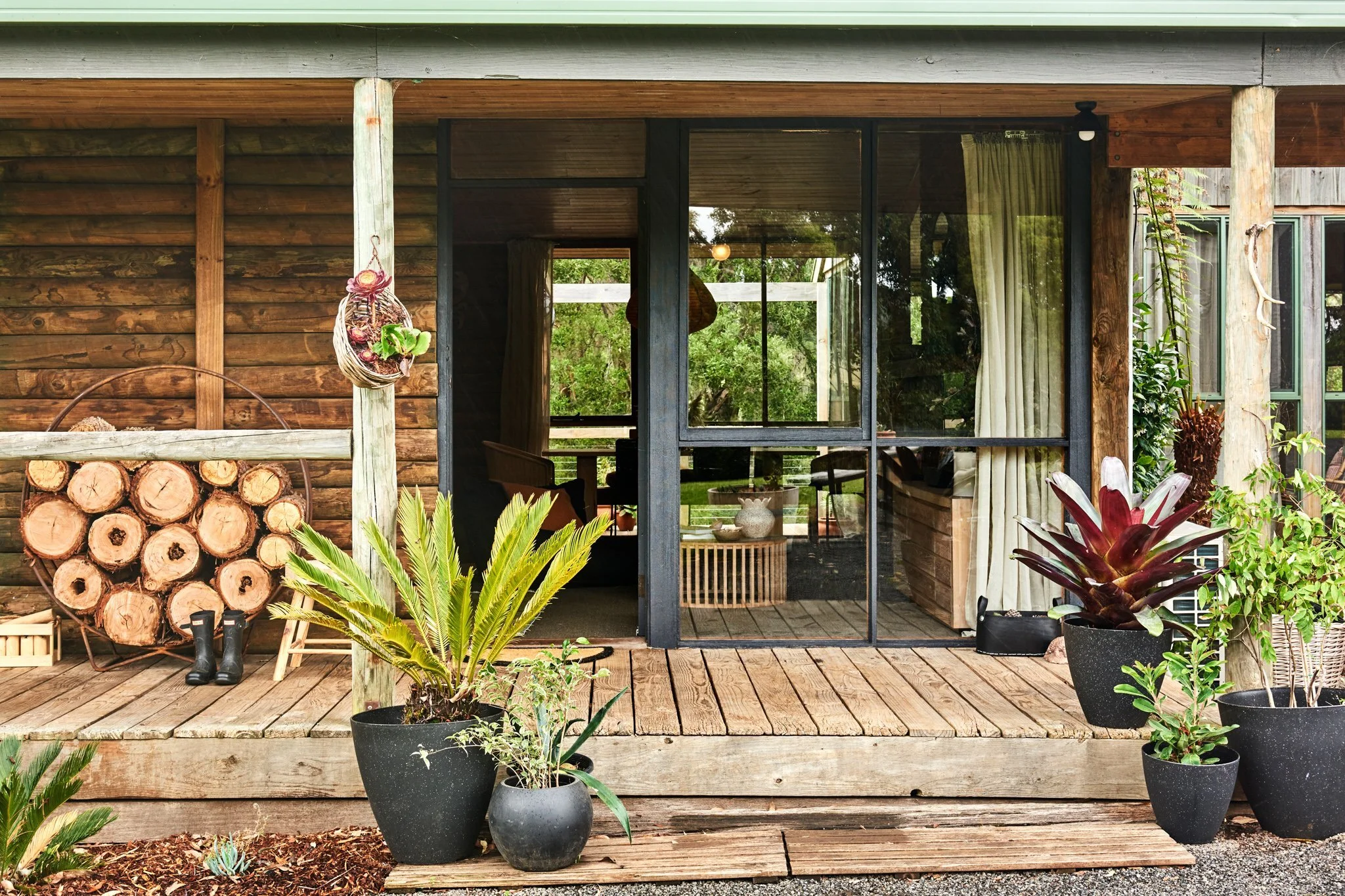 Resembling a traditional American cabin, The Log House by interior designer Emma O’Meara and her husband Simon sits between the bush and the beach.