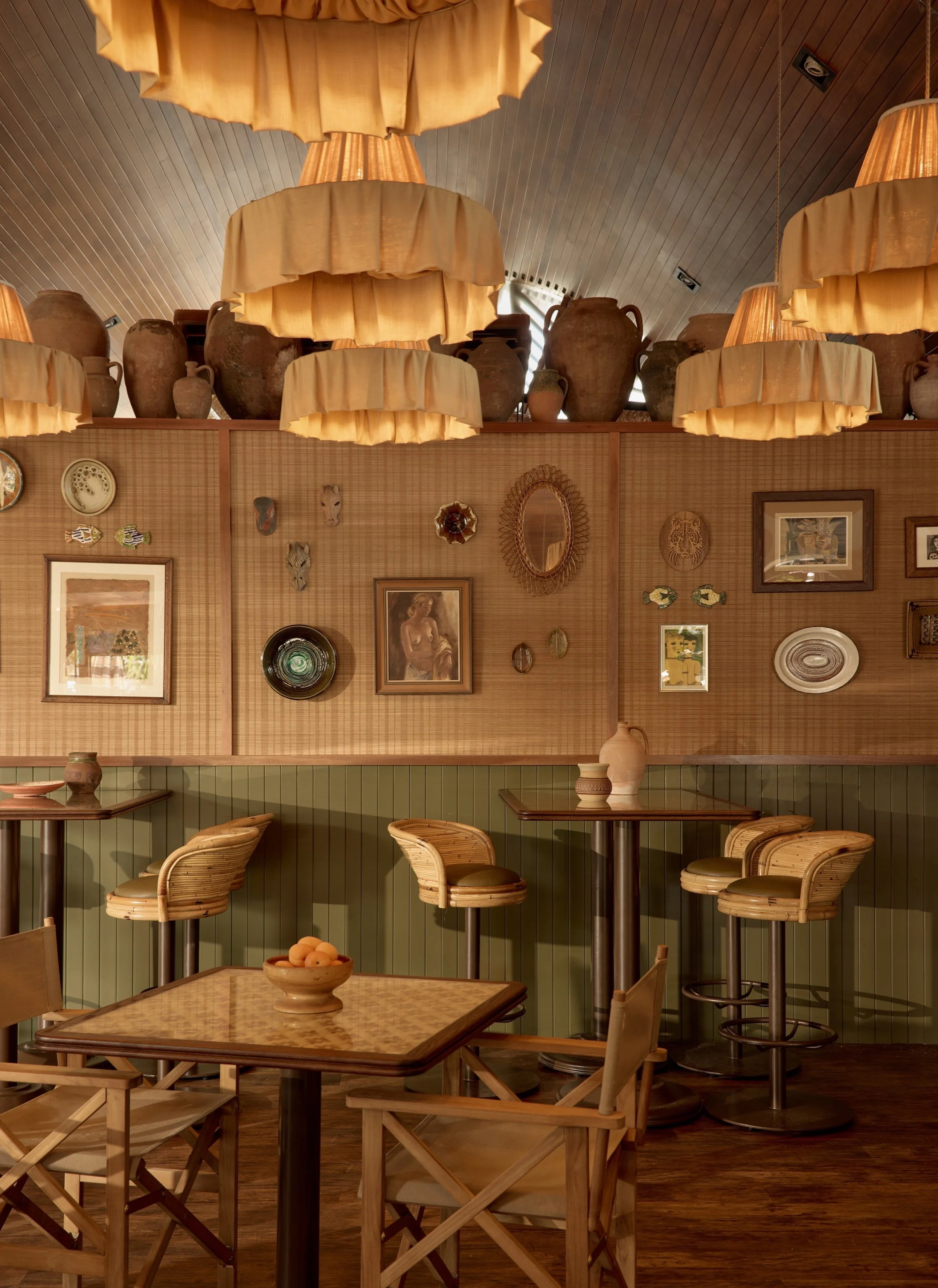 A curated collection of vintage ceramics and textured finishes sets the tone inside The Shack—where Byron’s beachside charm meets worldly nostalgia.