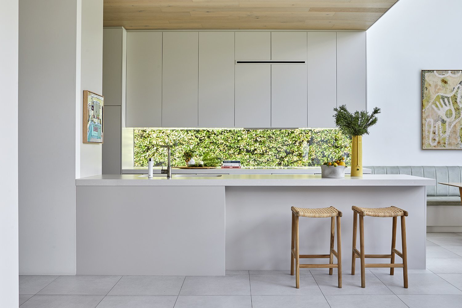 Designed for an owner builder, 360 Construction Group, The White House followed the brief of ‘less is more’ with a powerhouse of design coming together — Robson Rak on the architecture and Lucy Fenton from Fenton & Fenton on the styling. The result is a sleek, minimal, yet, art and design-filled home that provides a light and bright oasis.