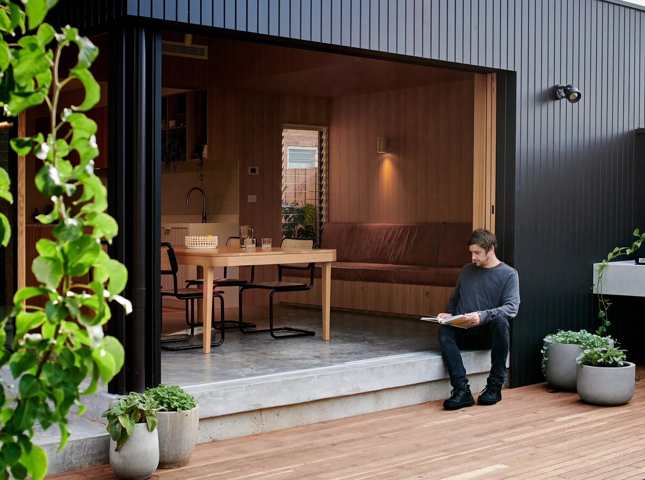 ‘With the sliding doors open, the family can now dine, entertain and relax whist being surrounded by greenery, luscious lawn, trees and garden beds, all contributing to a unique dining experience that can only enhance and enrich well-being,’ says Dan.