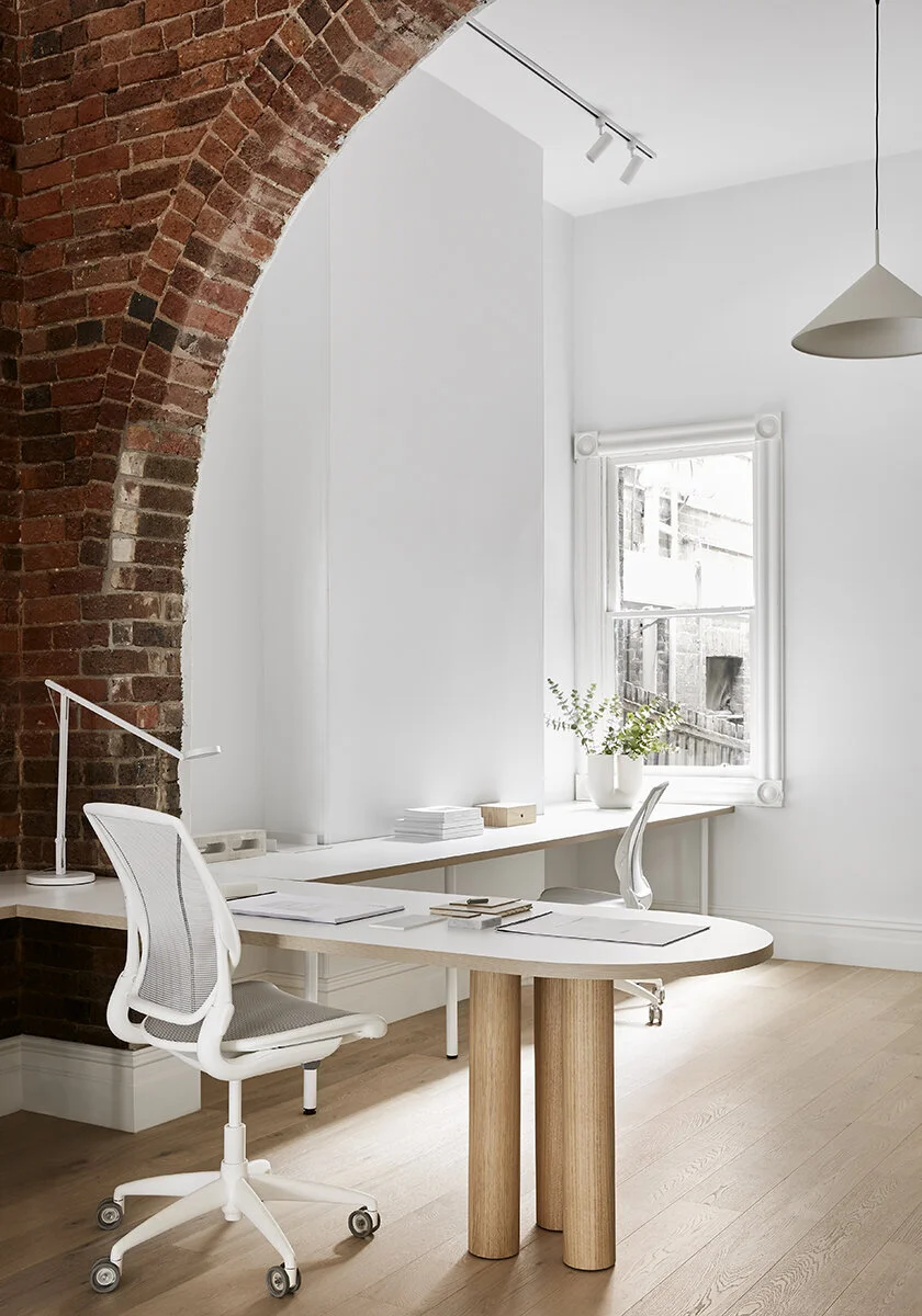 “We wanted to restore some of the existing features within the space like exposed brickwork, lofty ceilings and archway to create a sense of calm amongst the hustle of Burwood Road.”