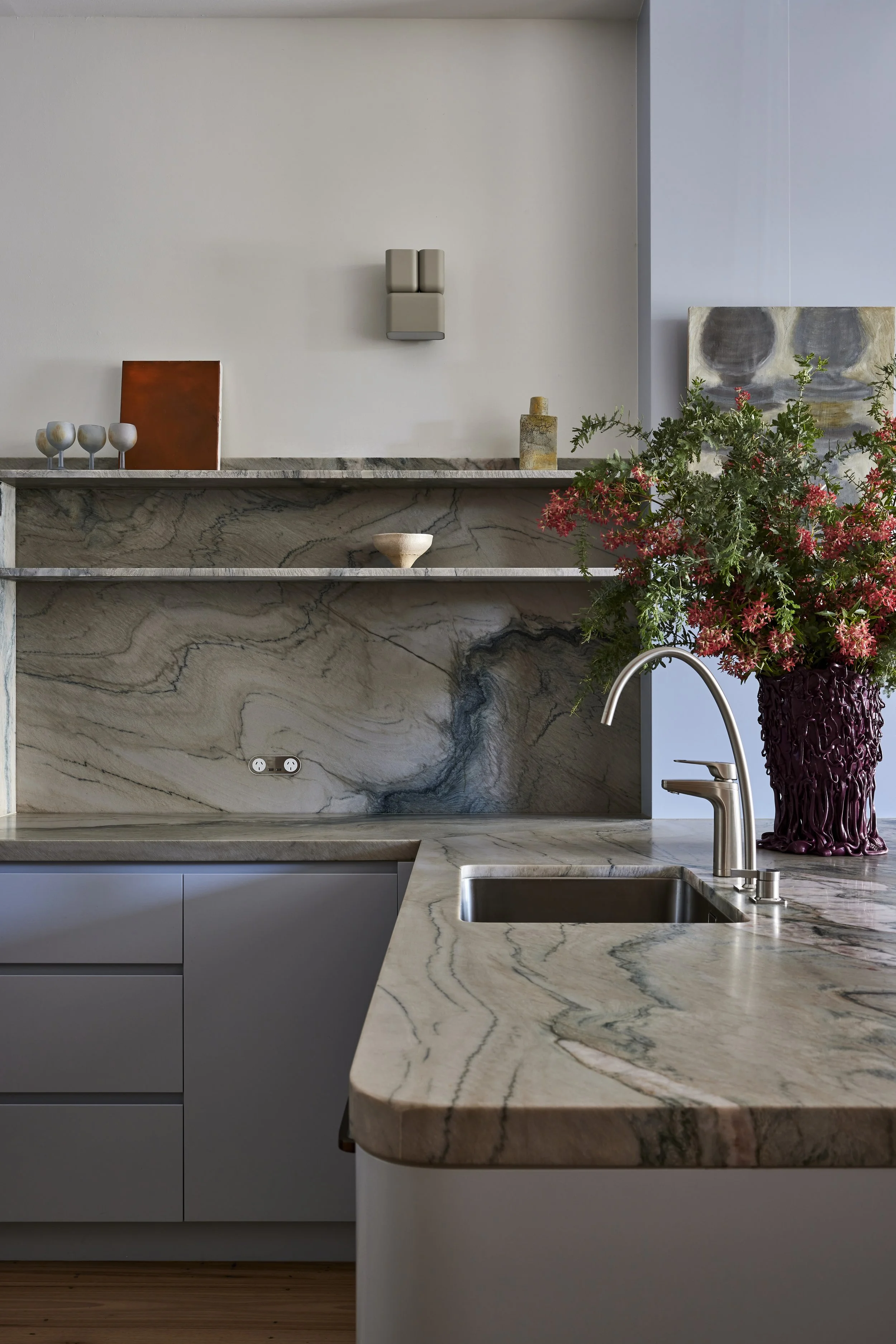 Gaetano Pesce vase. Kitchen cabinetry painted in Dulux Oxford Half.