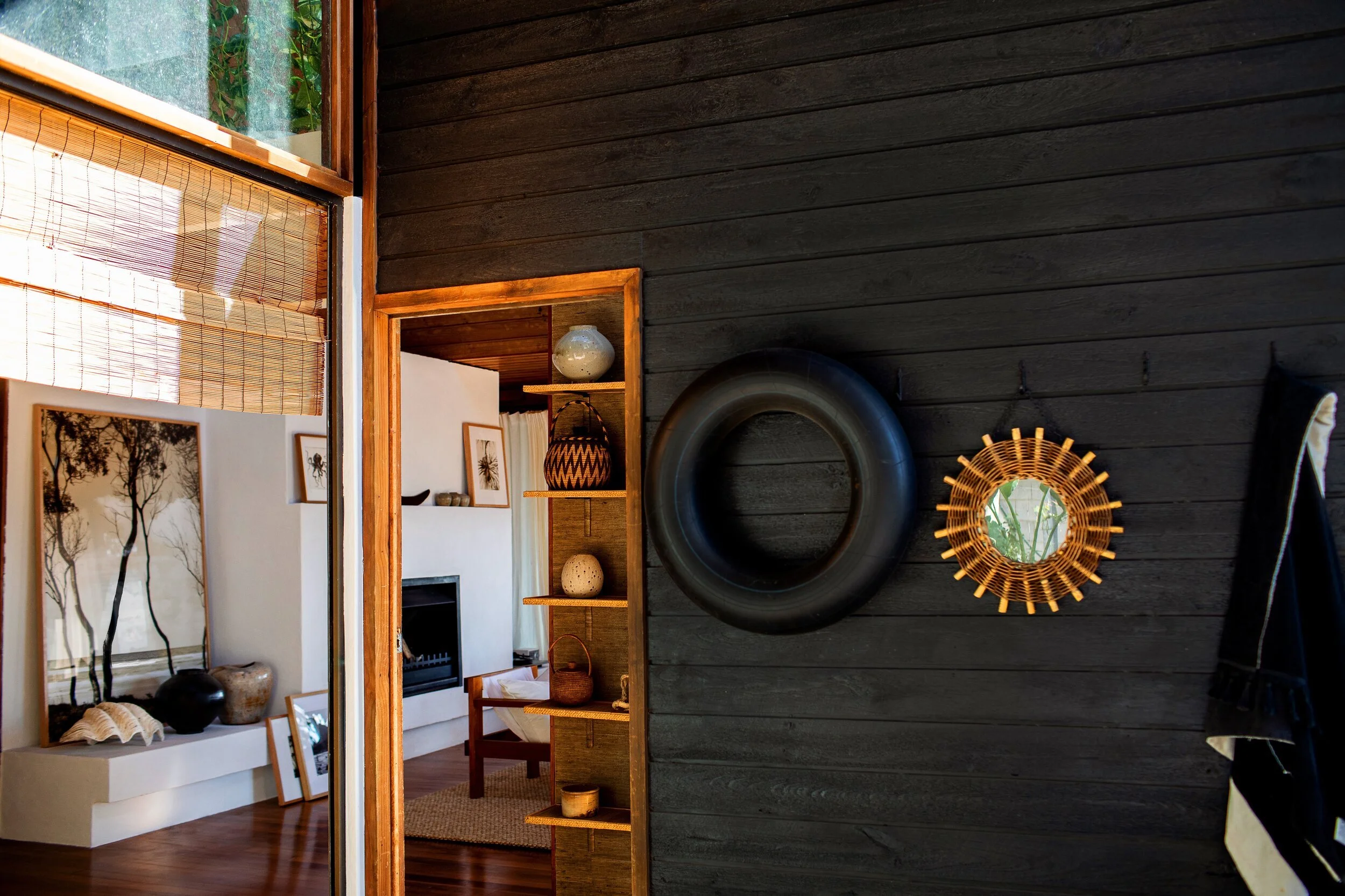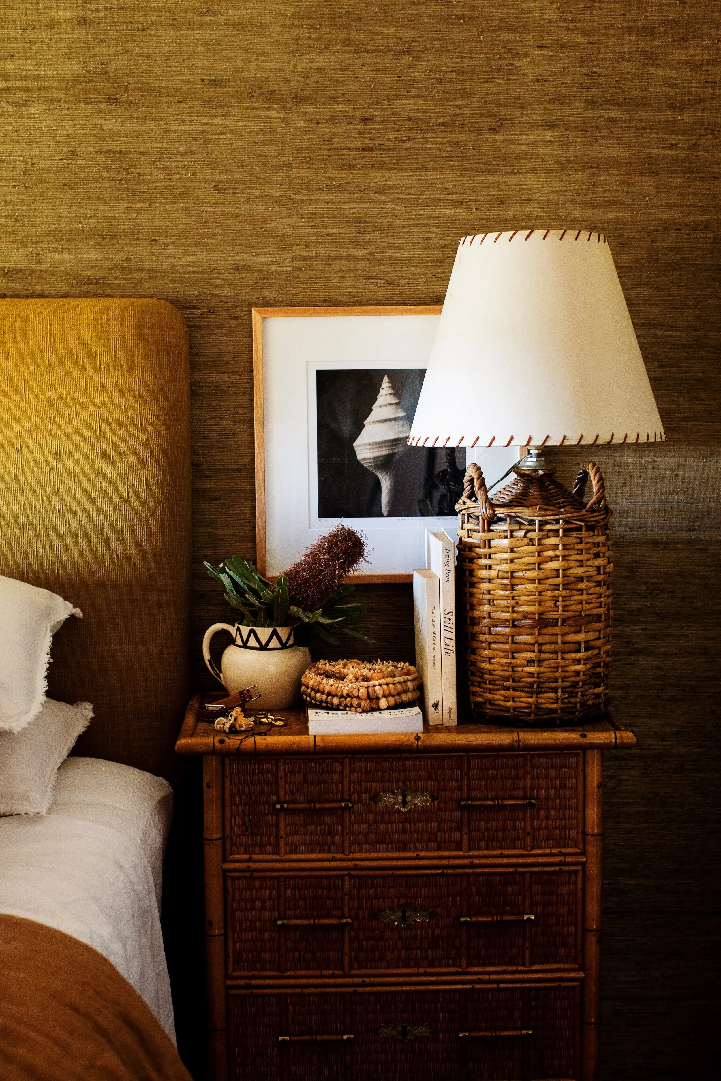 I added layers of textured grasscloth wallpaper into each of the three bedrooms, deliberately keeping these rooms a little darker, creating an atmosphere similar to what it might feel like to be in a hut. The darkness offers a real reprieve from the harsh Australian sunlight.