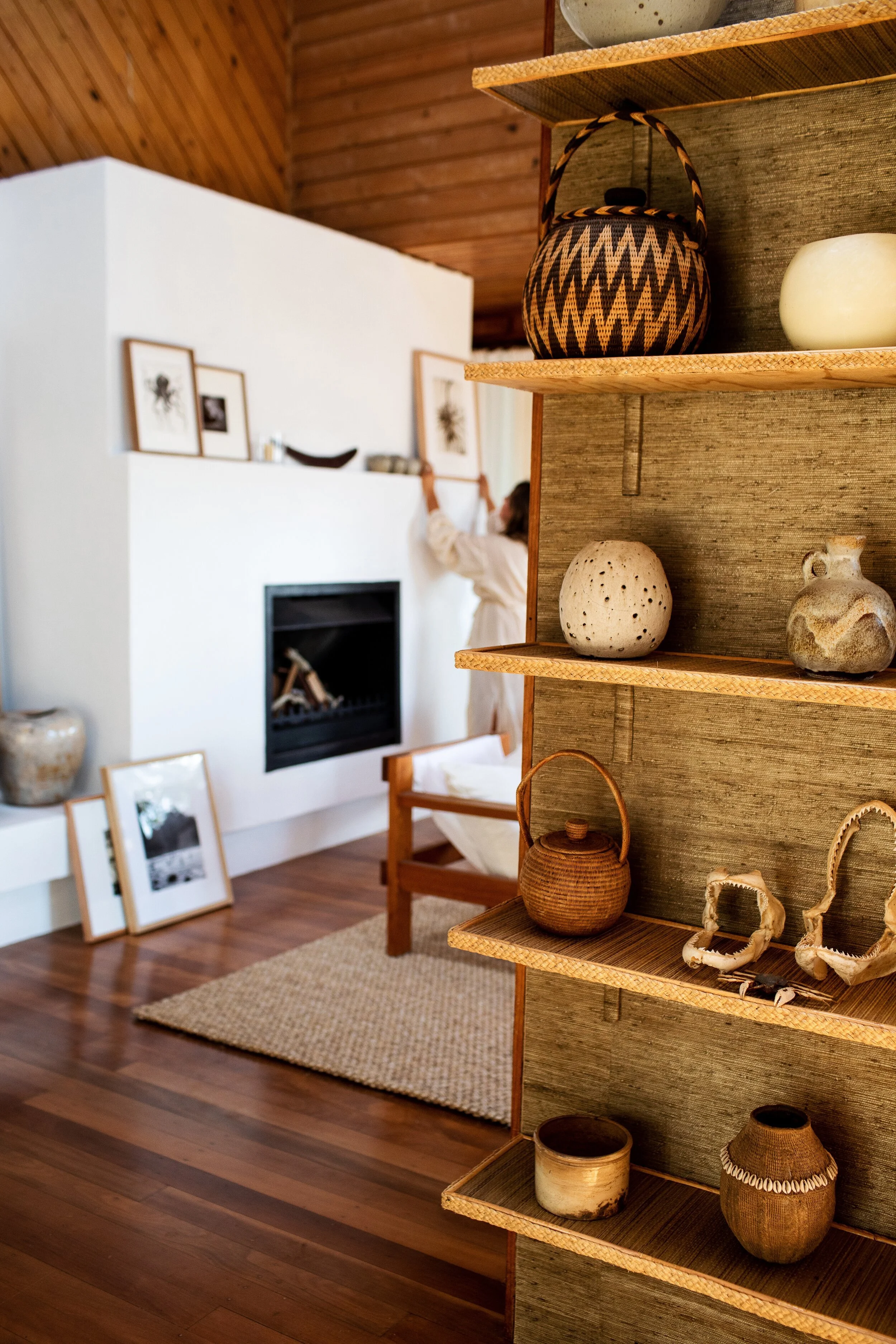 Classic matchstick blinds from the hardware store were hung to frame all the windows and doorways, to soften and dapple the natural light. Seagrass mats were added to each room, so you can feel the raw fibres underfoot, like being barefoot outdoors. I would find old woven baskets through the week and bring them over on the ferry and fill them with fallen coconuts and pandanus fruit. Using whatever is around as decorative objects just started to make more and more sense. When you live like this, so close to nature, you get a greater understanding of and appreciation for the environment.