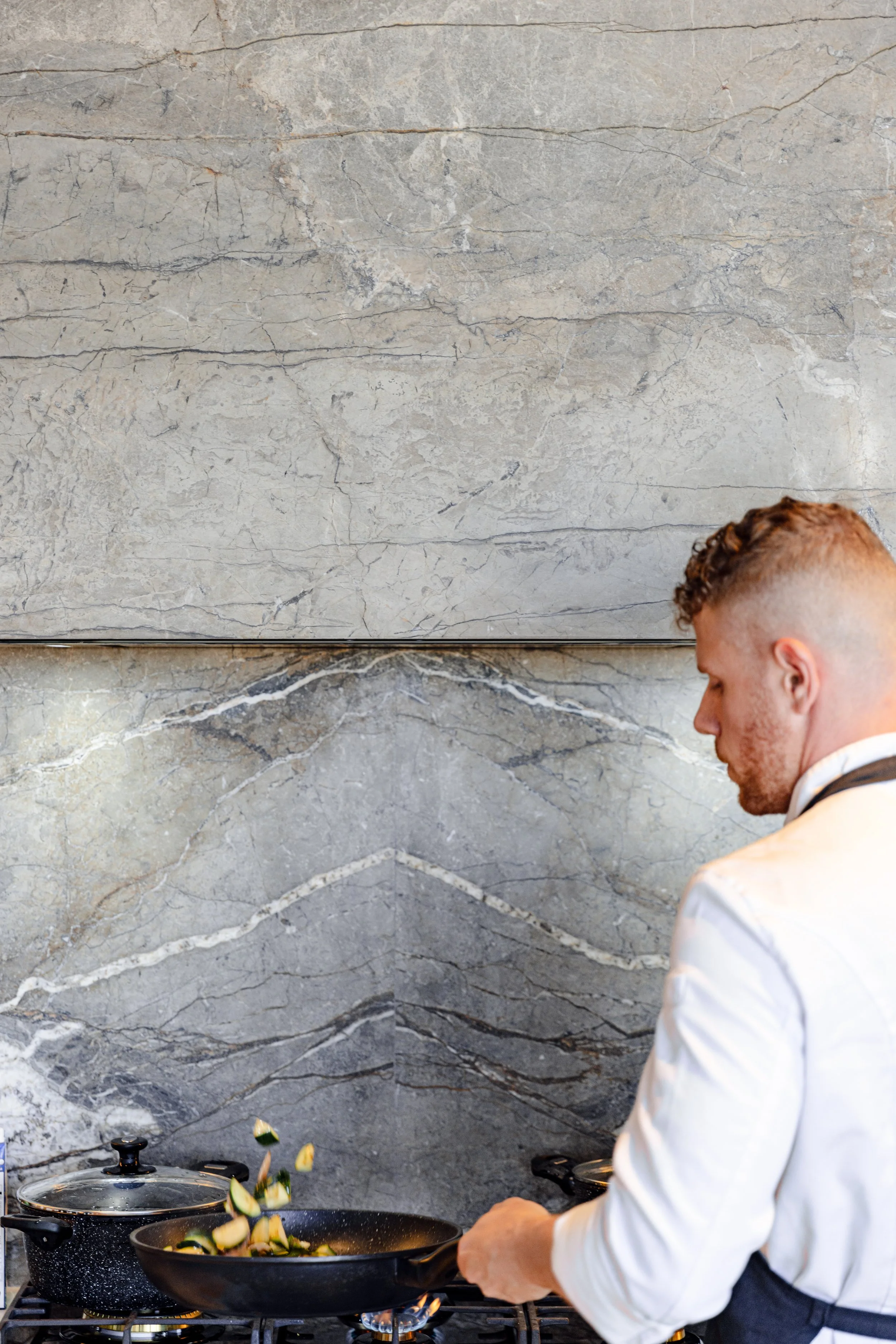 The natural, earthy finishes throughout Zensi are found both inside and out.